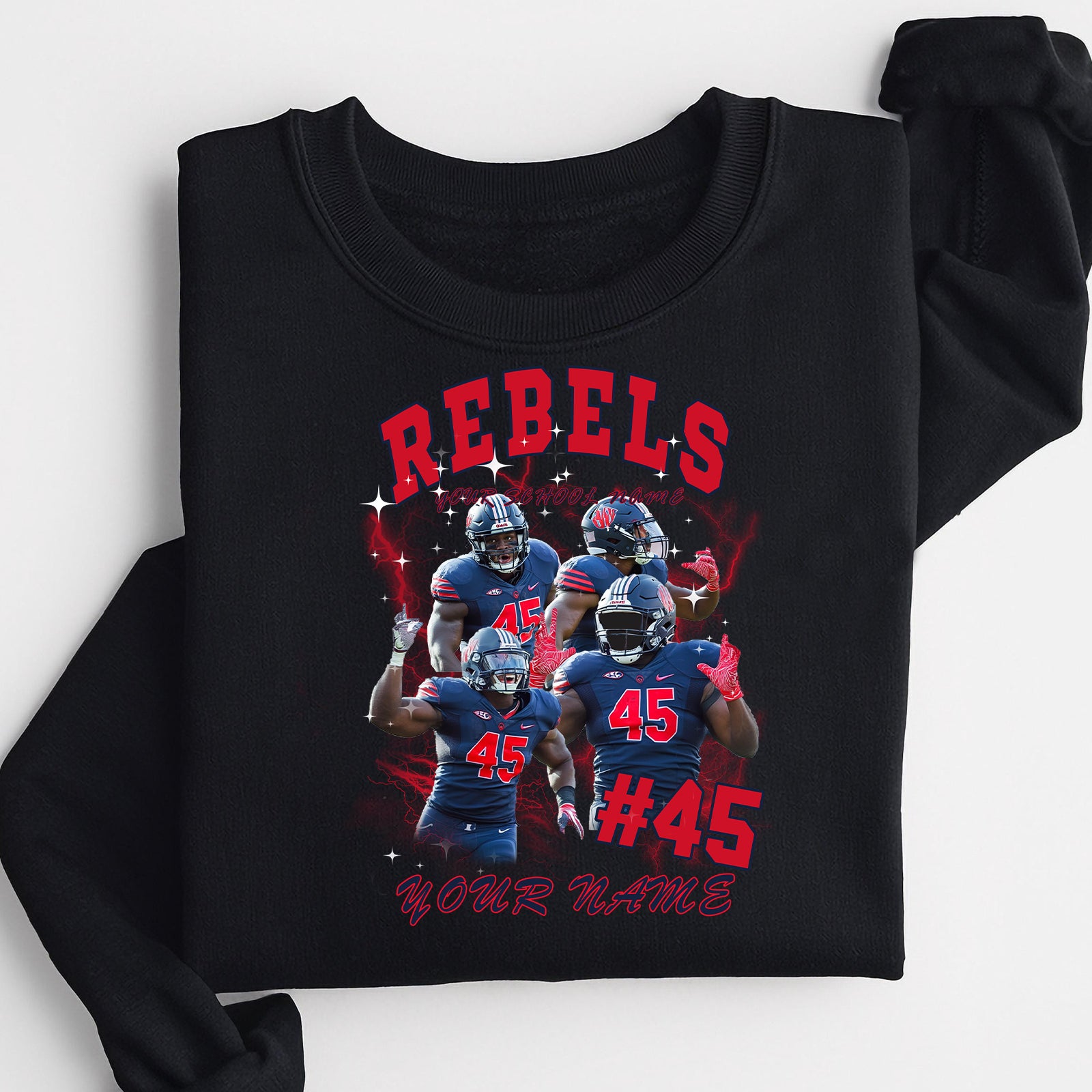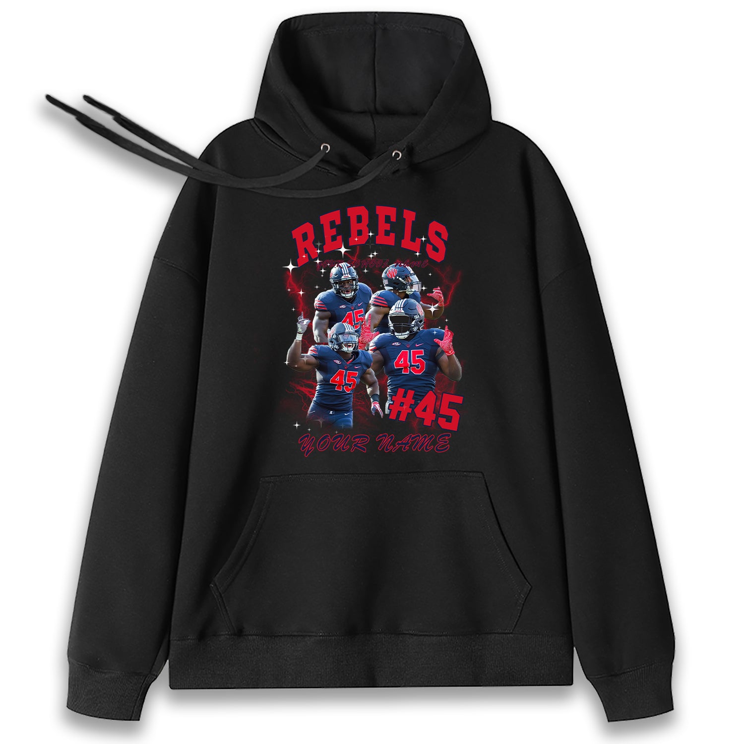 Personalized Football T-Shirt Hoodie Sweatshirt, Ole Miss Rebels Football, Custom Player Name Number, Ole Miss Football Fans Gift