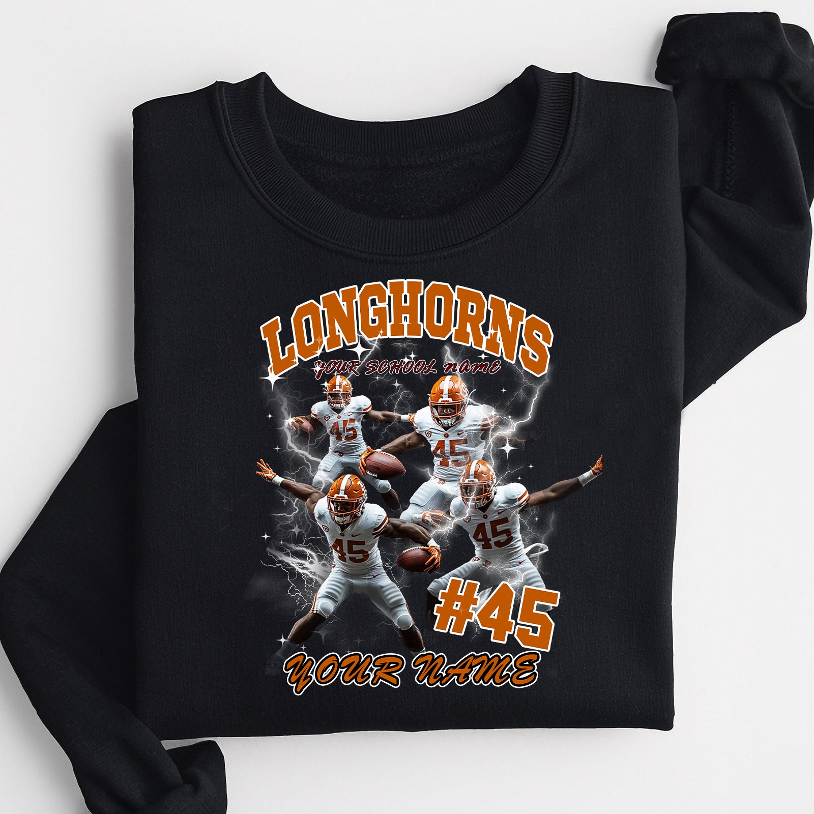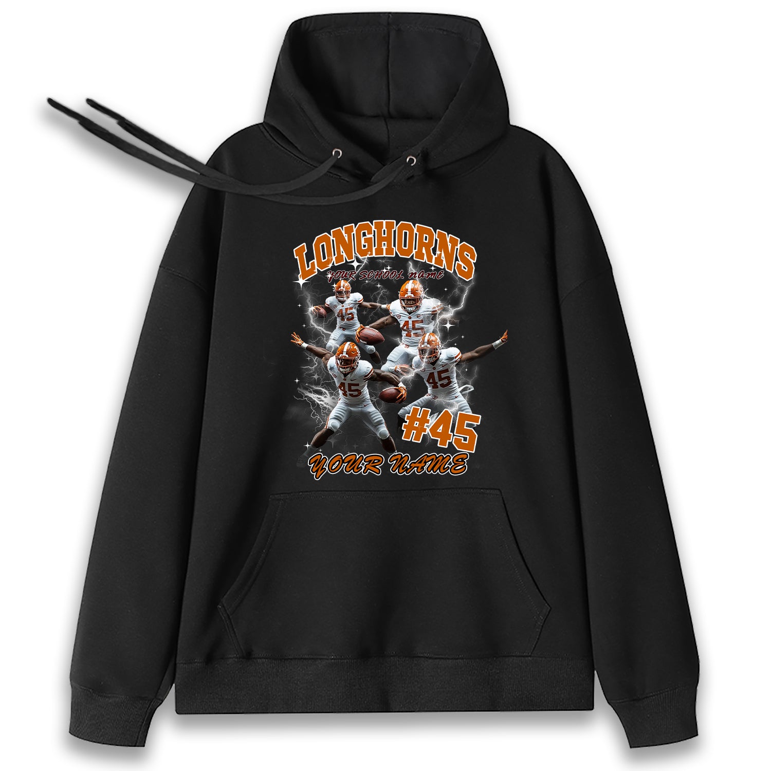 Personalized Football T-Shirt Hoodie Sweatshirt, Texas Longhorns football, Custom Player Name Number, UT Football Fans Gift