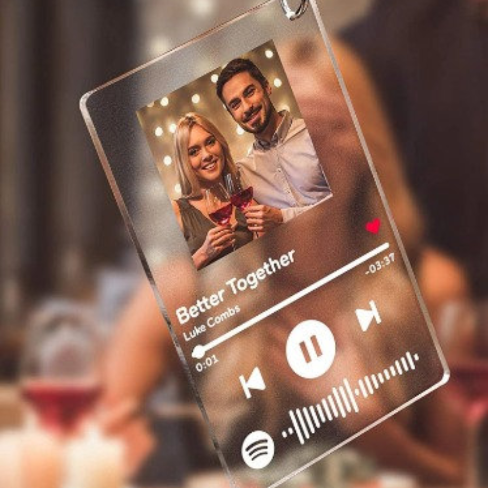 - IMPRESSIVE CUSTOM GIFT – Choose your favorite song/album and turn it into a beautiful picture keychain customized. You can add a Spotify code! As soon as you scan the code on Spotify , your song will instantly begin to play. Best gifts as Valentine's Day, Christmas Day, birthday, Father’s Day, Mother’s Day, birthday, or any anniversary. Surprise him or her with this cute music keychain! They will love this song keychain!