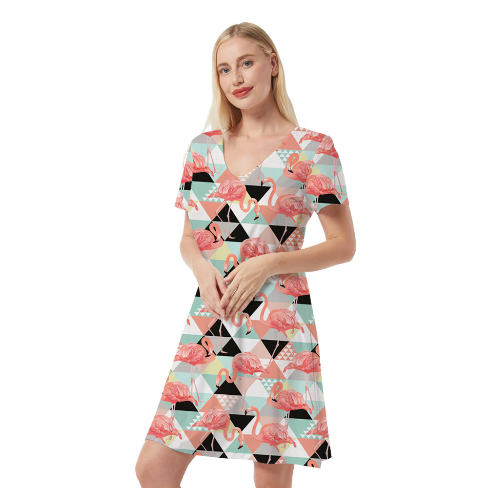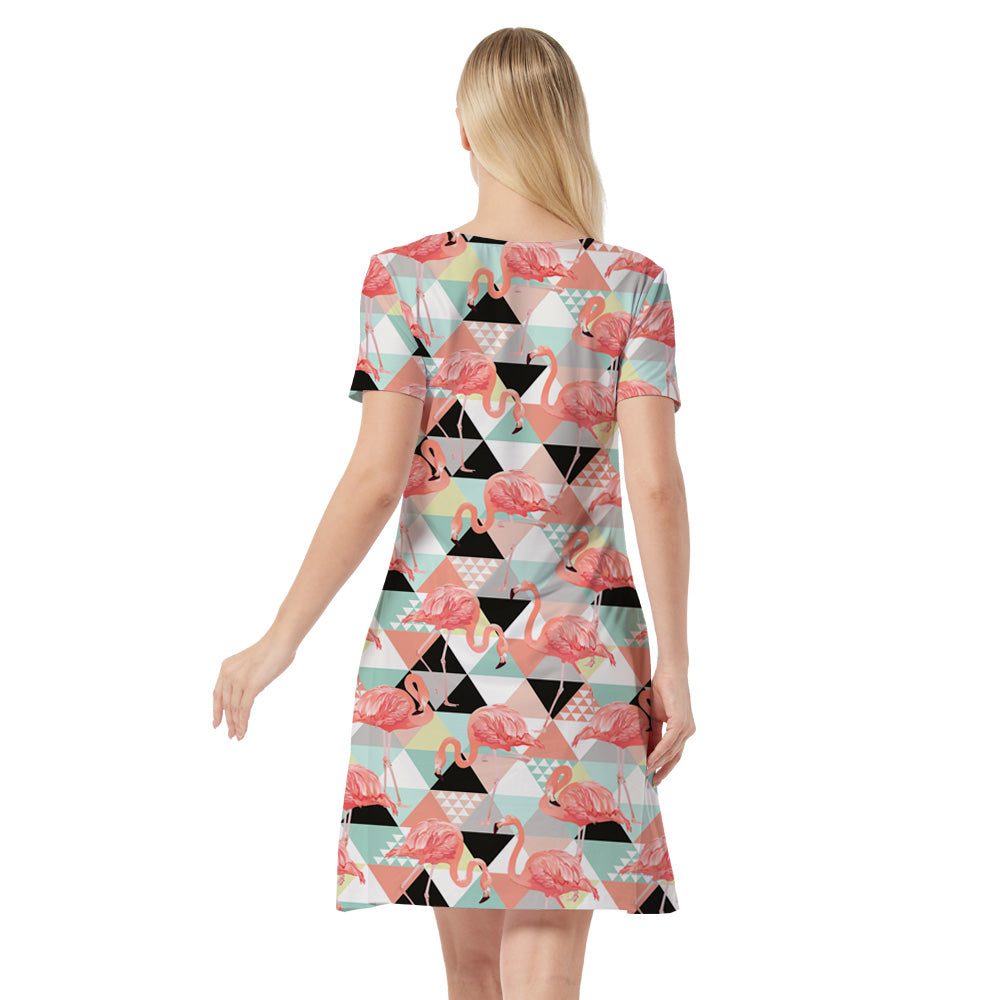 Vestido de talla grande para mujer, ropa de verano rosa flamenco