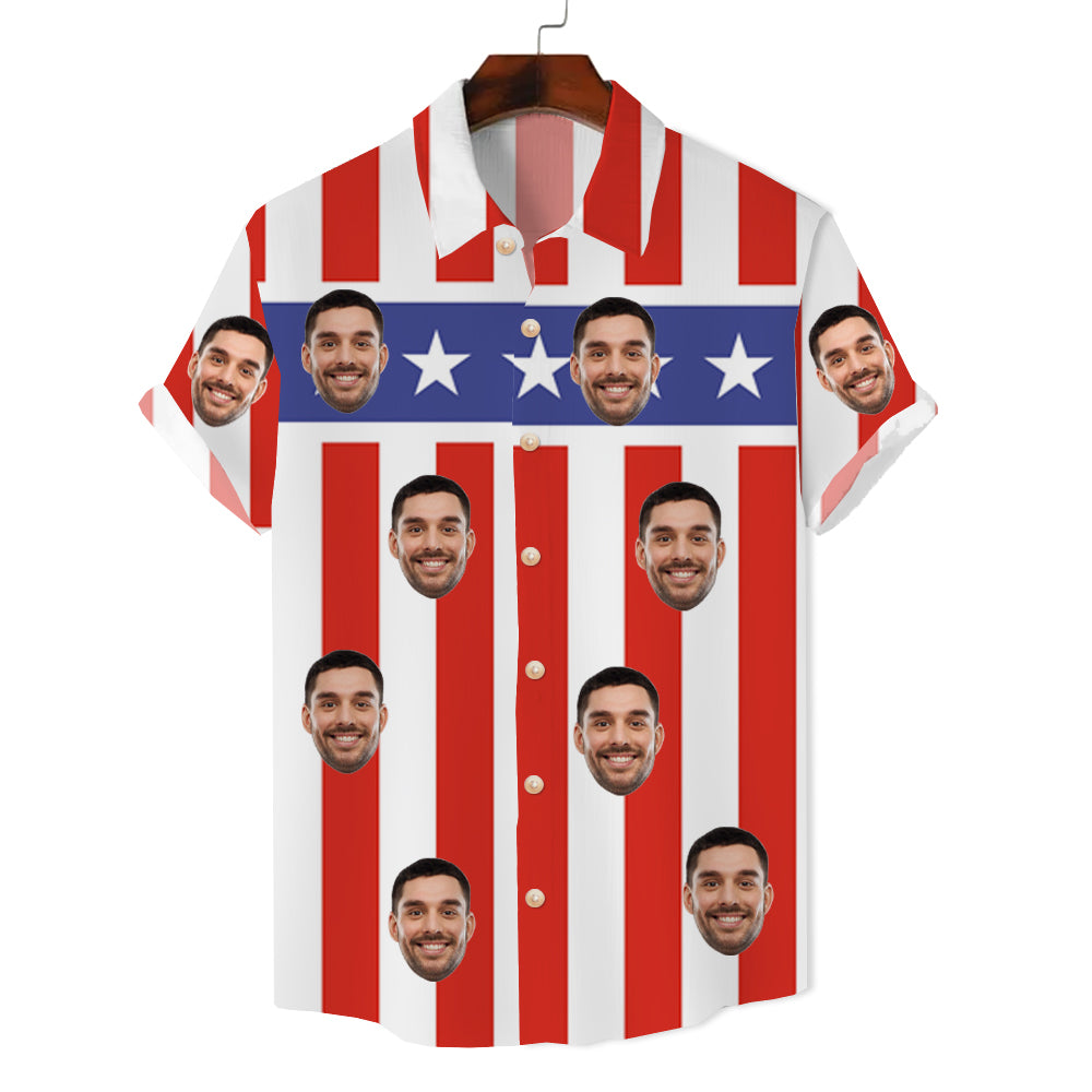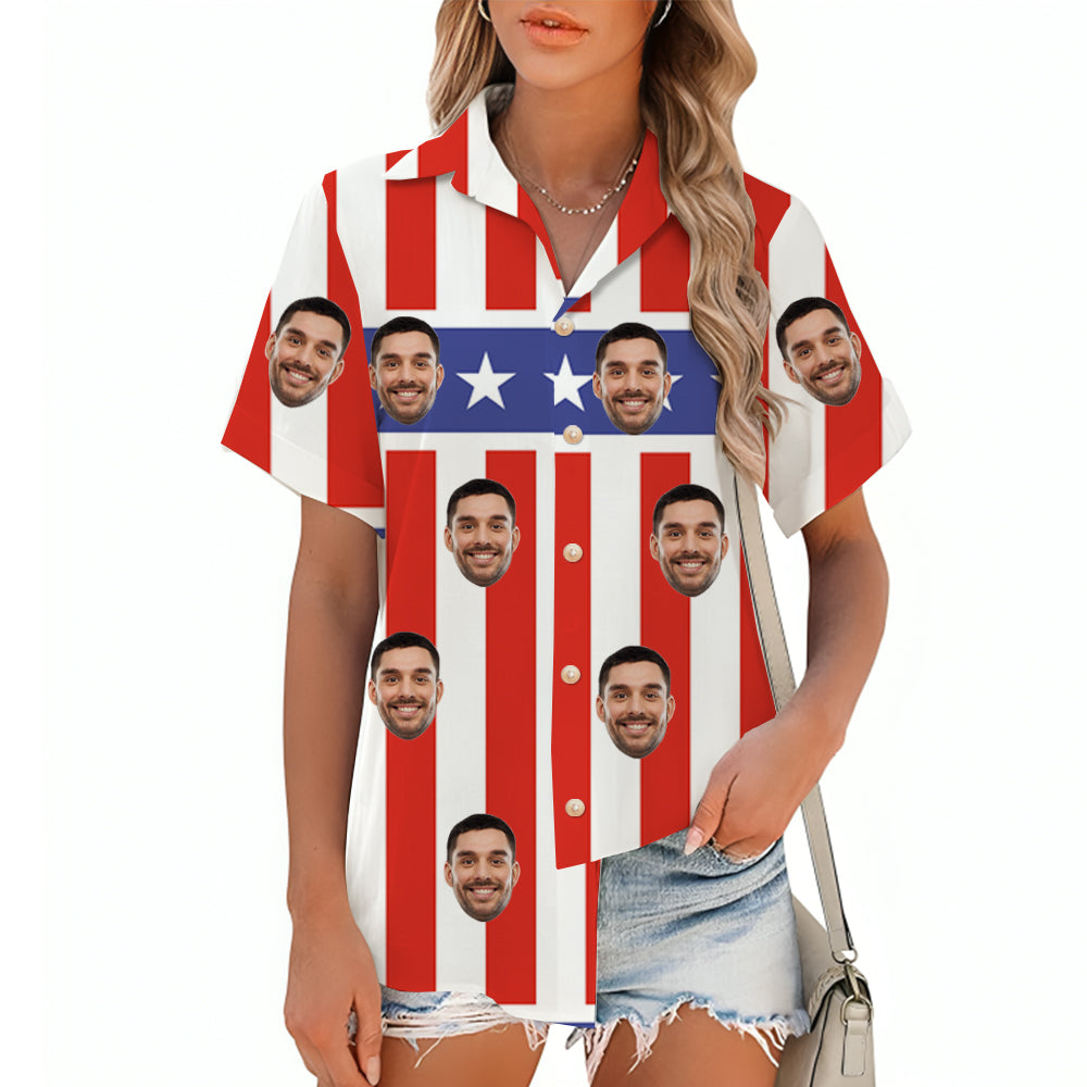 Red and White Stripes Star Print Women's Short-Sleeved Shirt Summer Tops American Independence Day Outfit