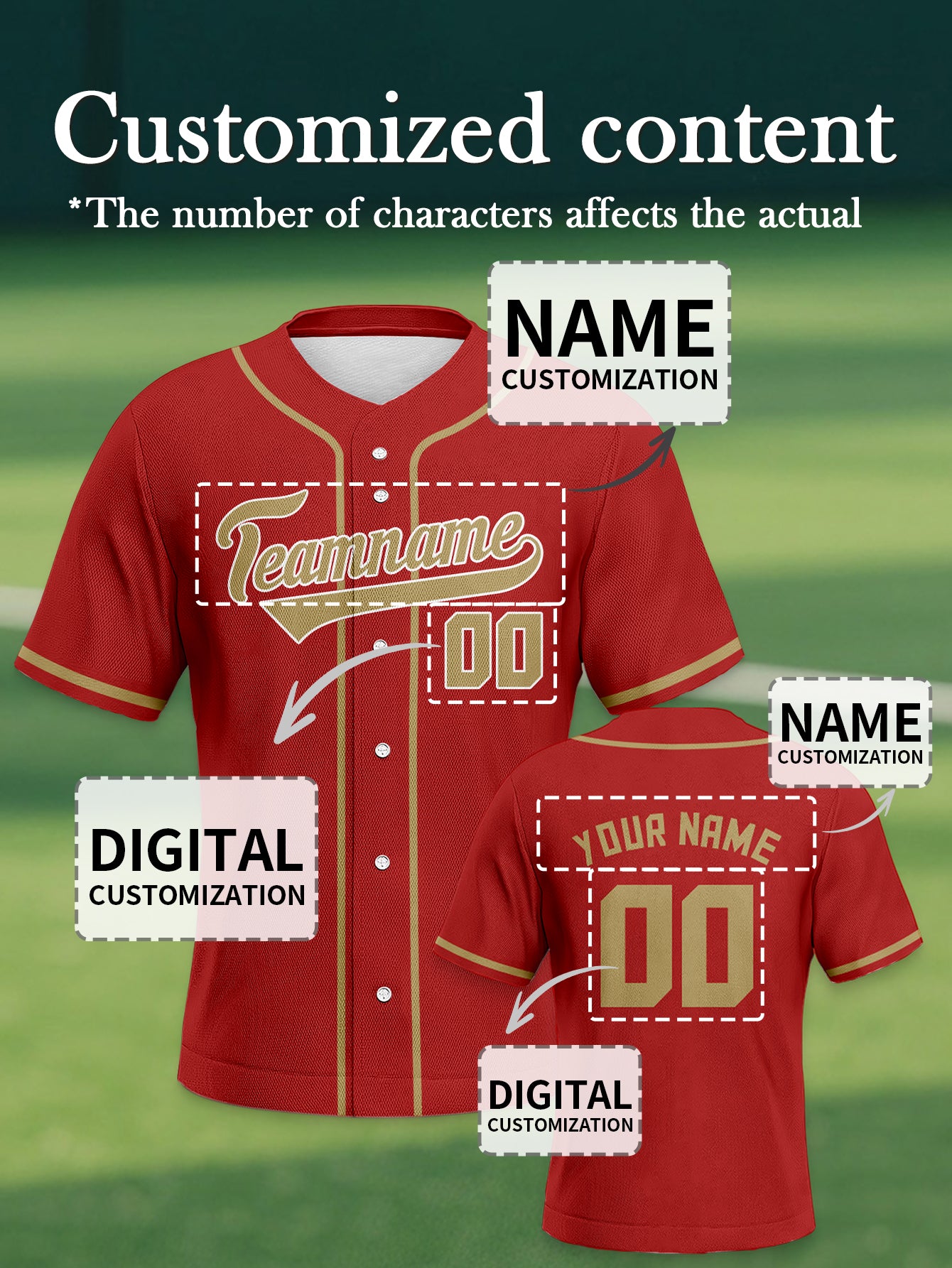Red & Gold Solid Baseball Uniform - San Francisco 49ers Custom Name & Number