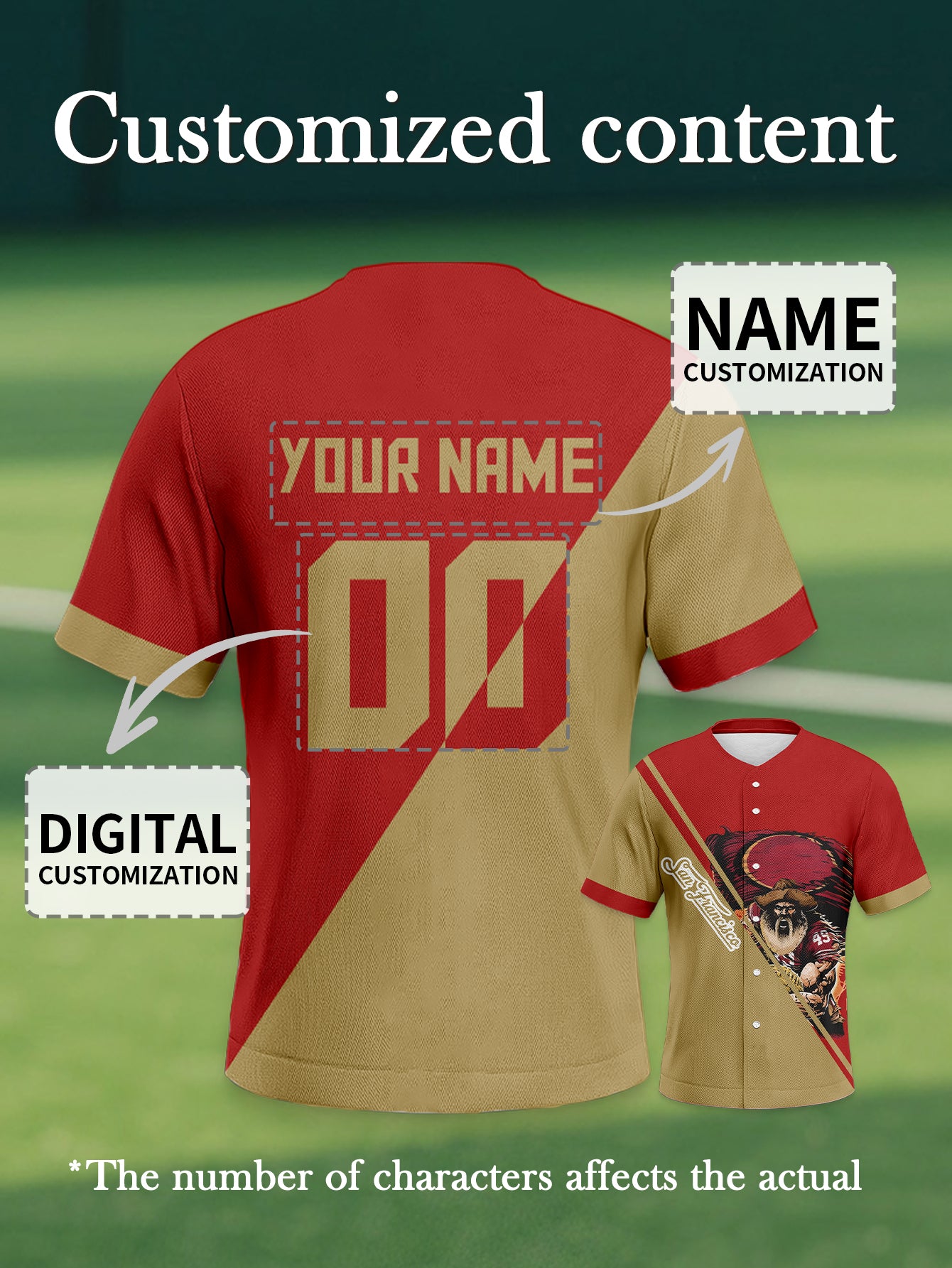 San Francisco 49ers Fan Baseball Jersey - Name & Number Printing
