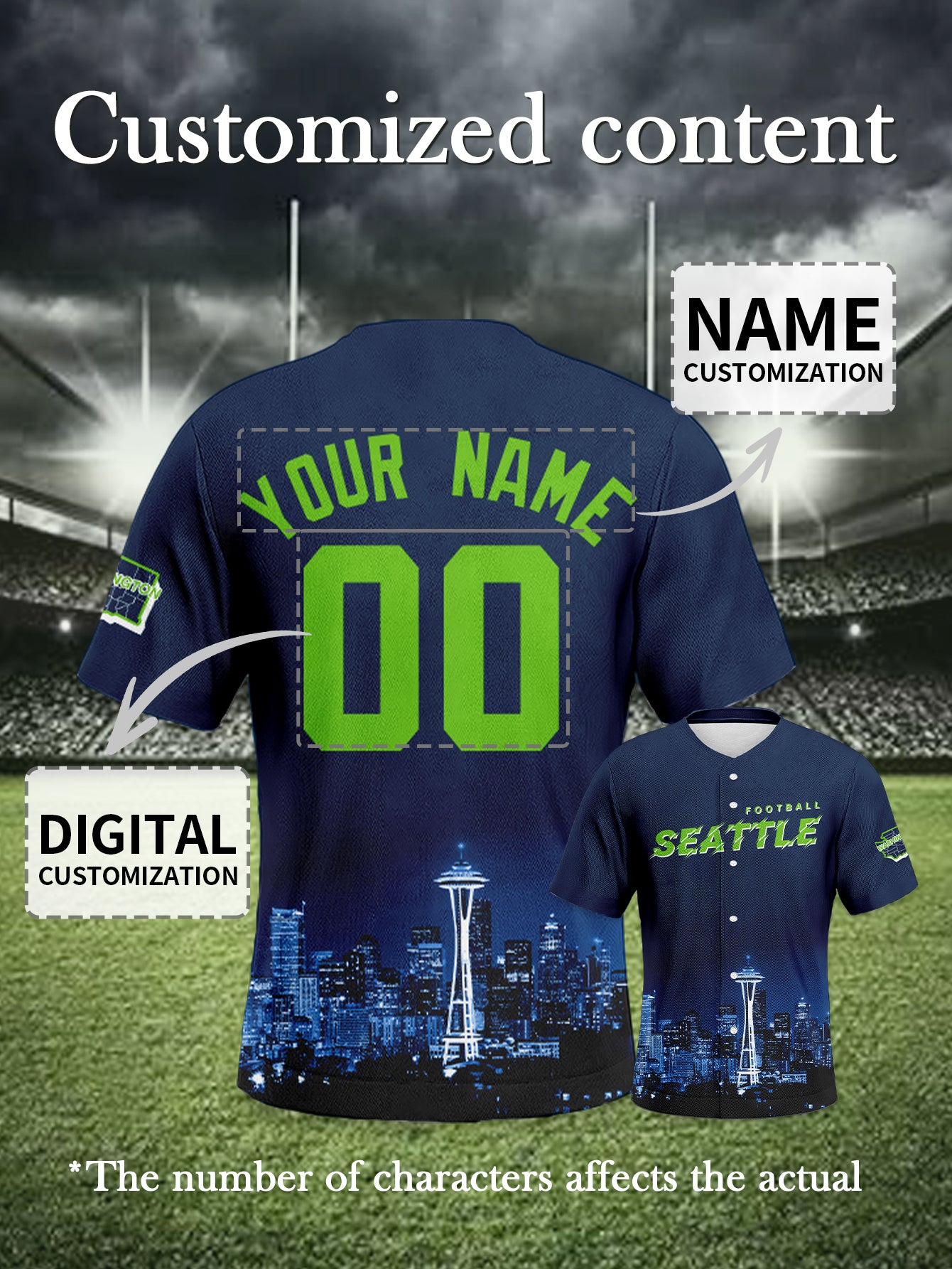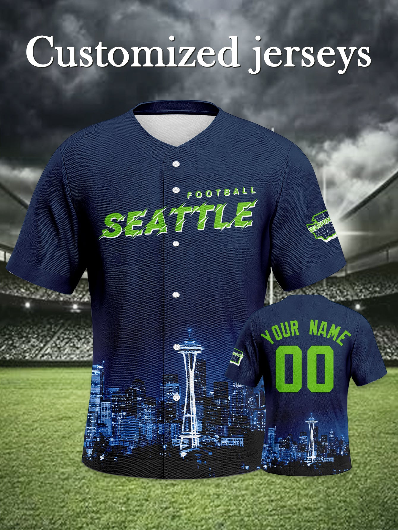 Seattle Seahawks Navy-Neon Baseball Jersey - Inspired Custom