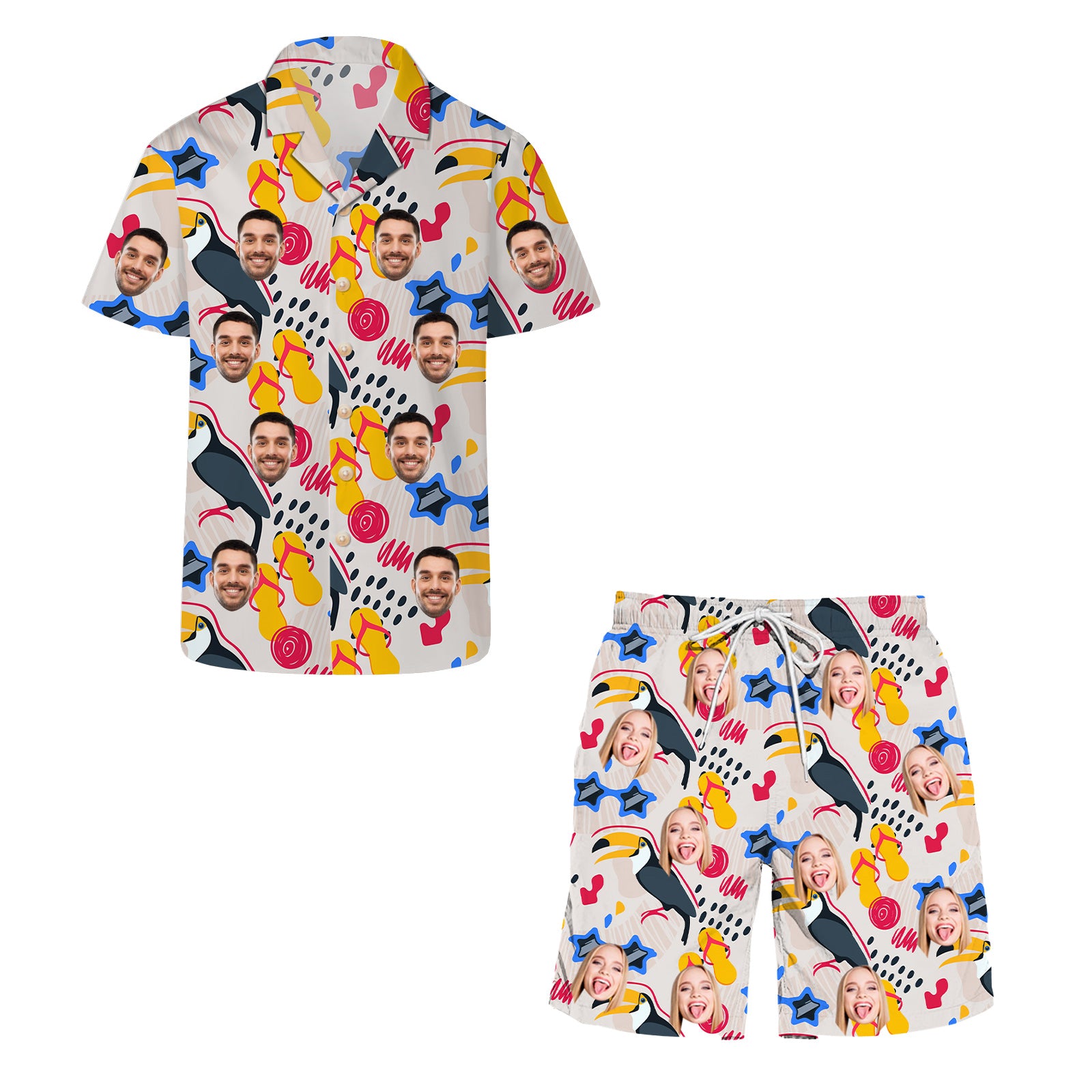 (Tax Included) Beach & Seaside Holiday Set - Shirt & Shorts With Customizable Face Perfect For Vacations