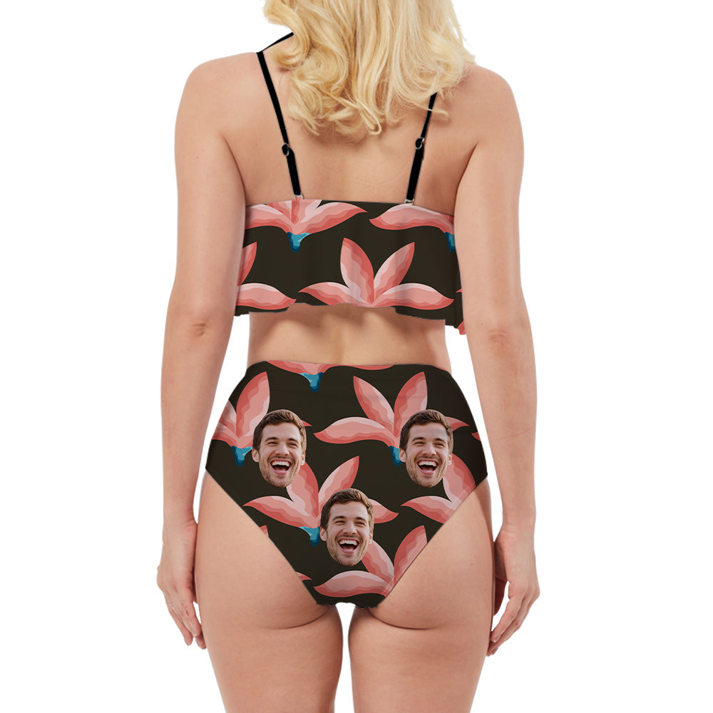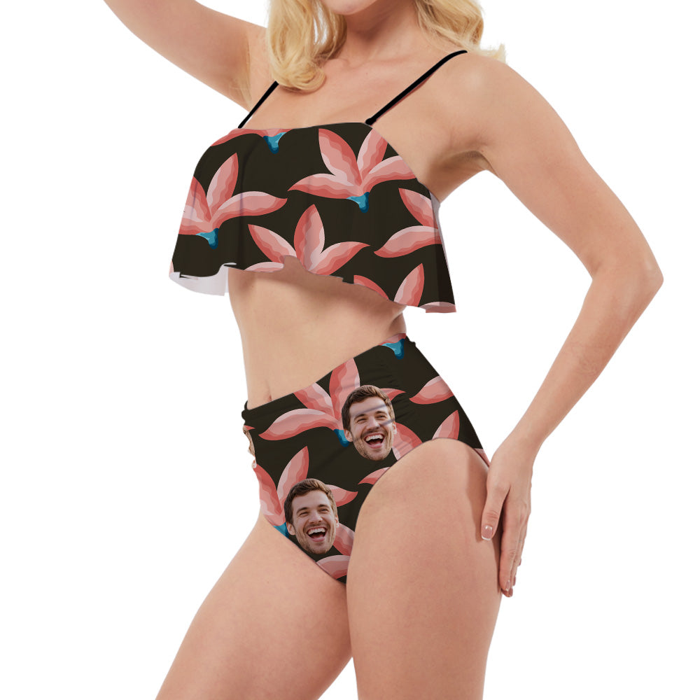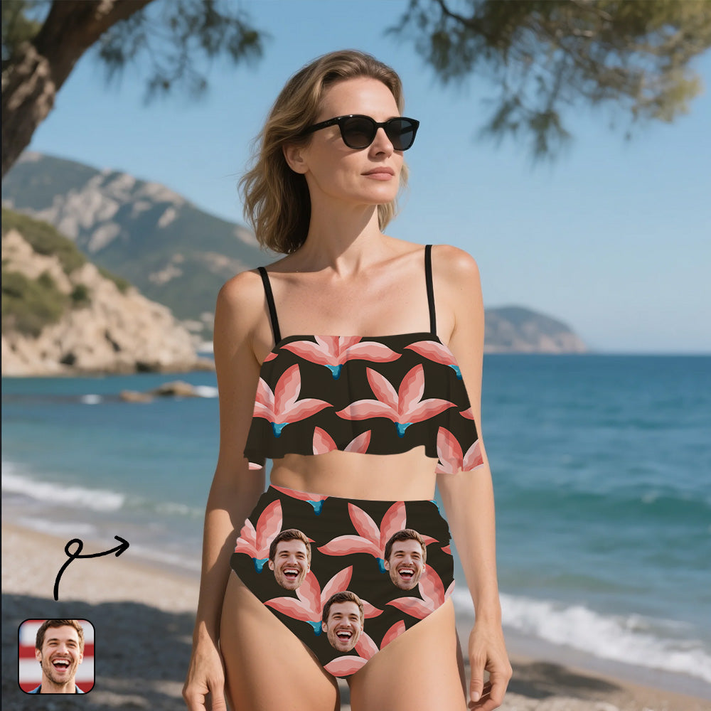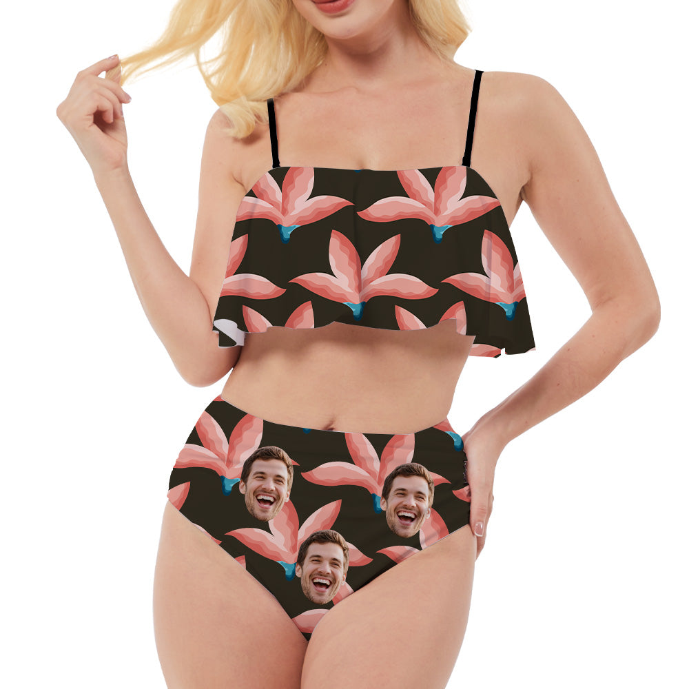 (Tax Included) Beachside Glam-Tiered Ruffle Bikini Top With Custom Face Accents