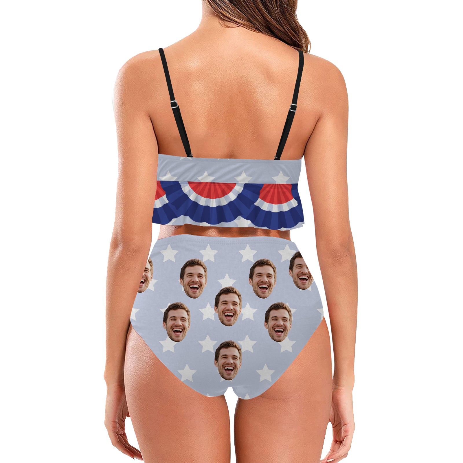 (Tax Included) Custom Face Abstract Flag Swimsuit - Artistic Star Pattern With Personalized Image