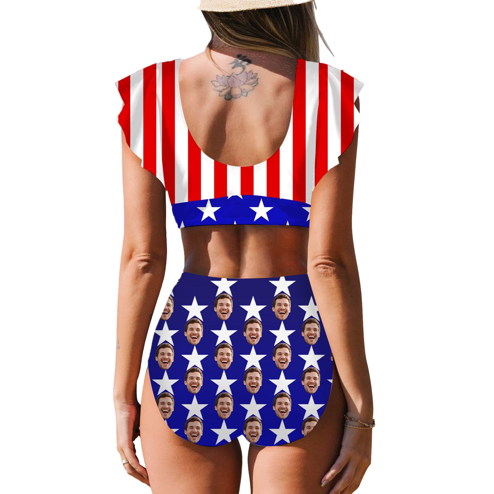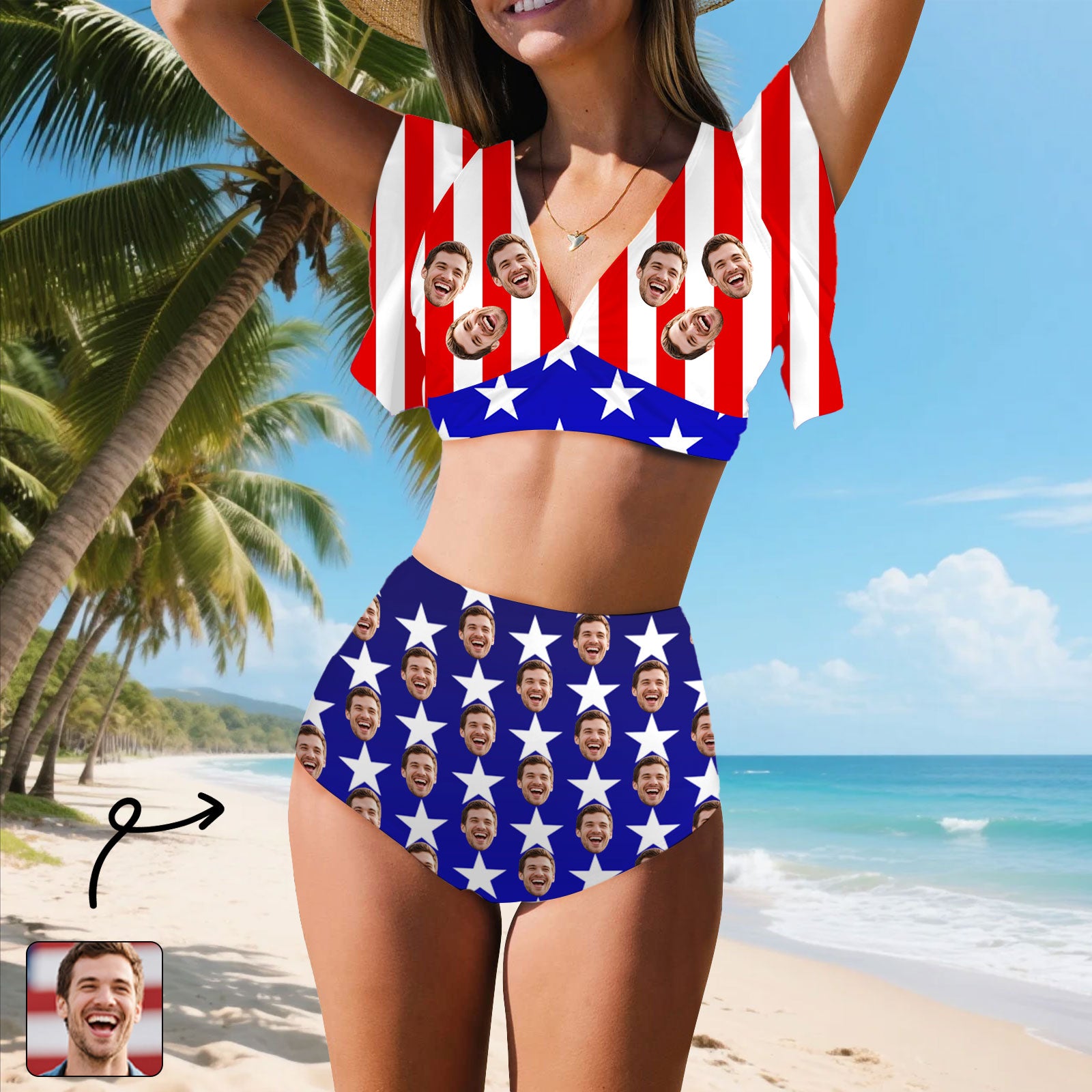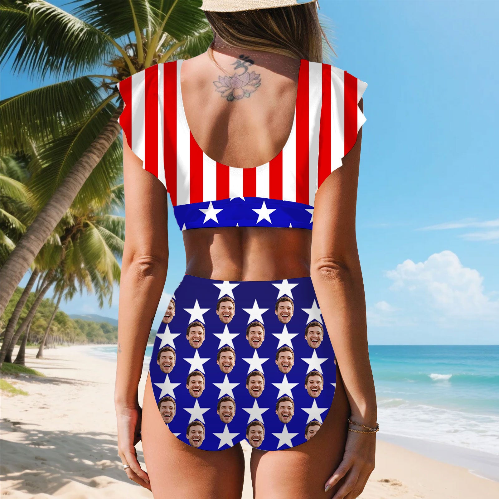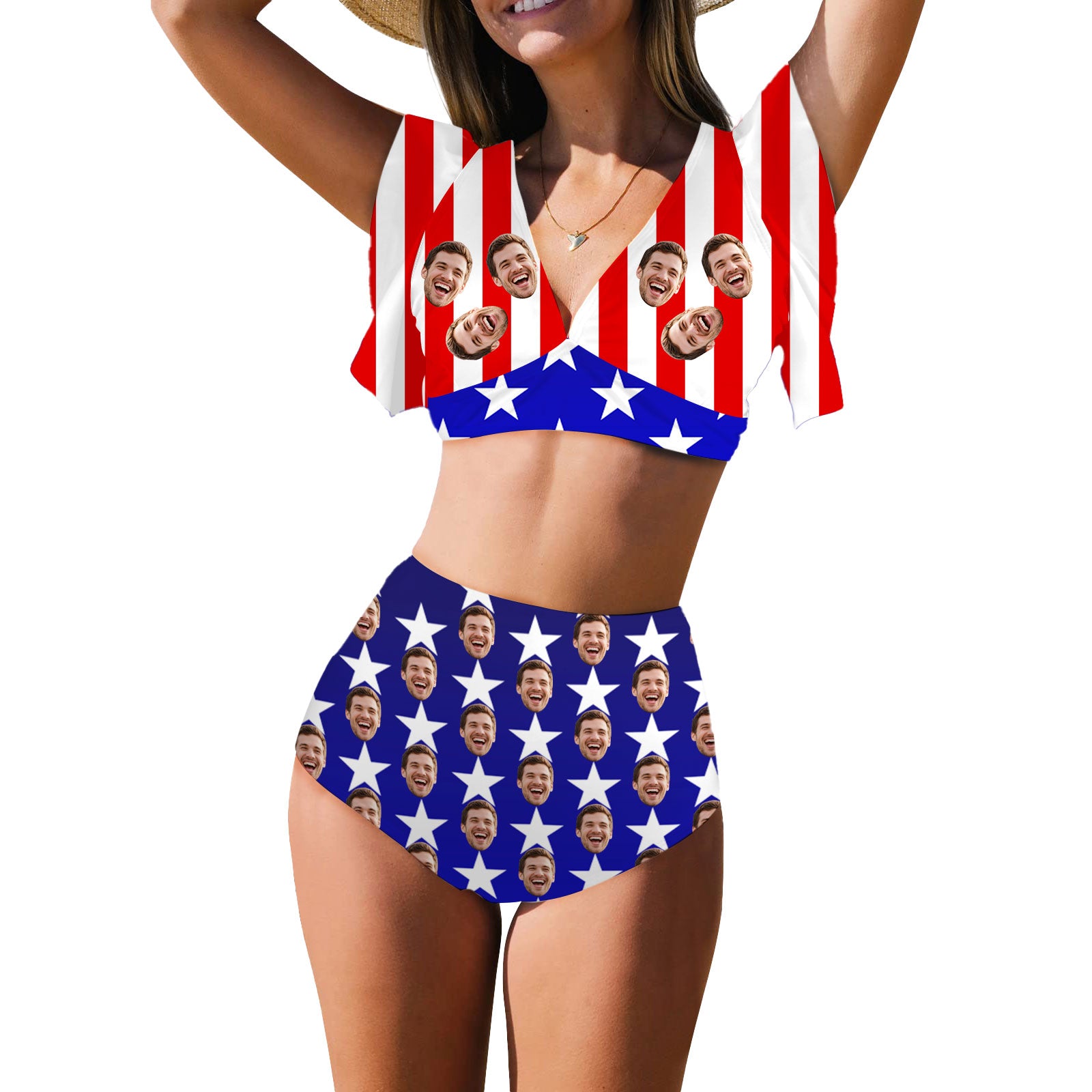 (Tax Included) Custom Face American Flag Bikini - Star-Spangled Portrait Swimwear