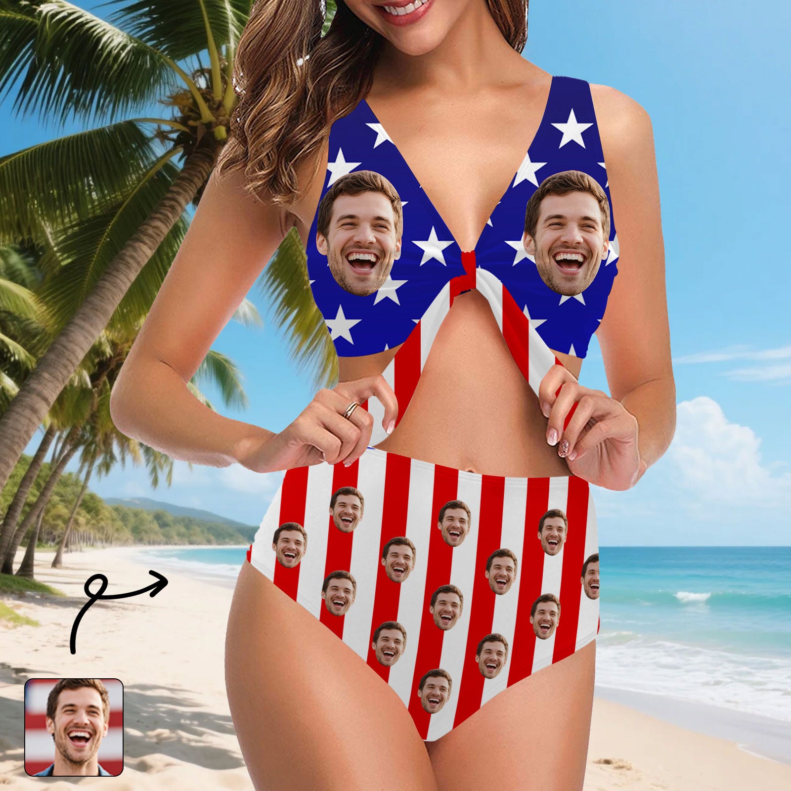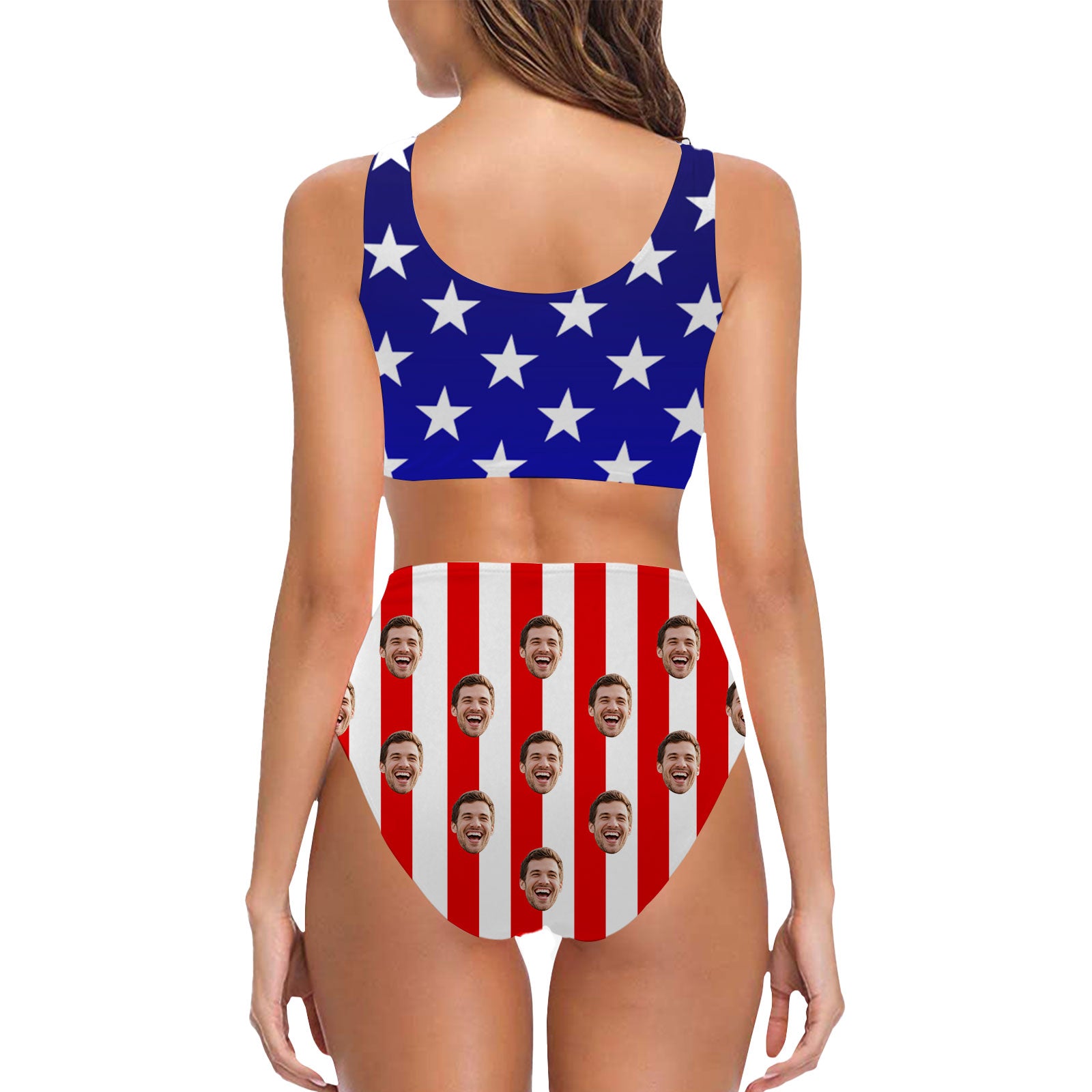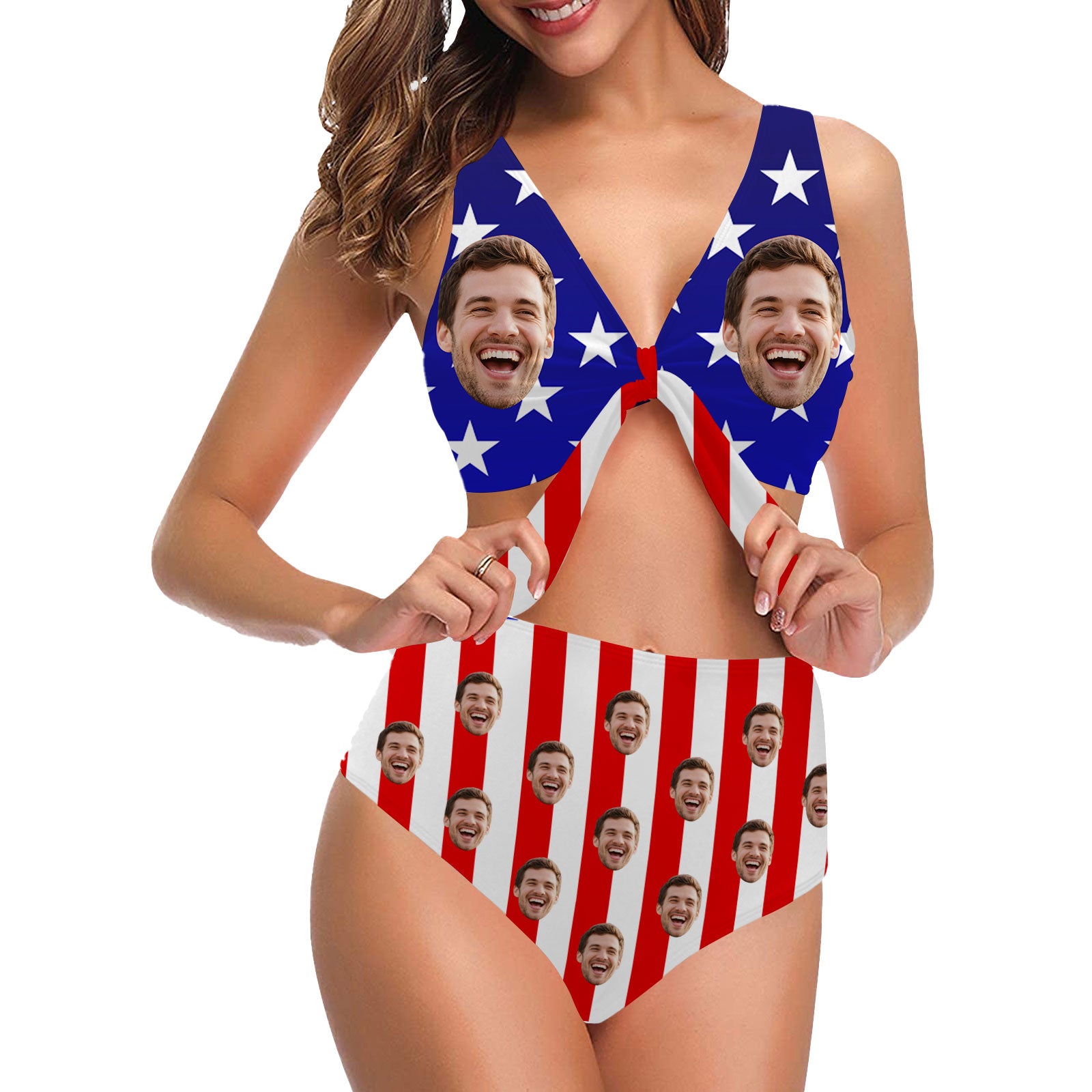 (Tax Included) Custom Face American Flag Swimsuit - Patriotic Portrait Swimwear For Pool Parties