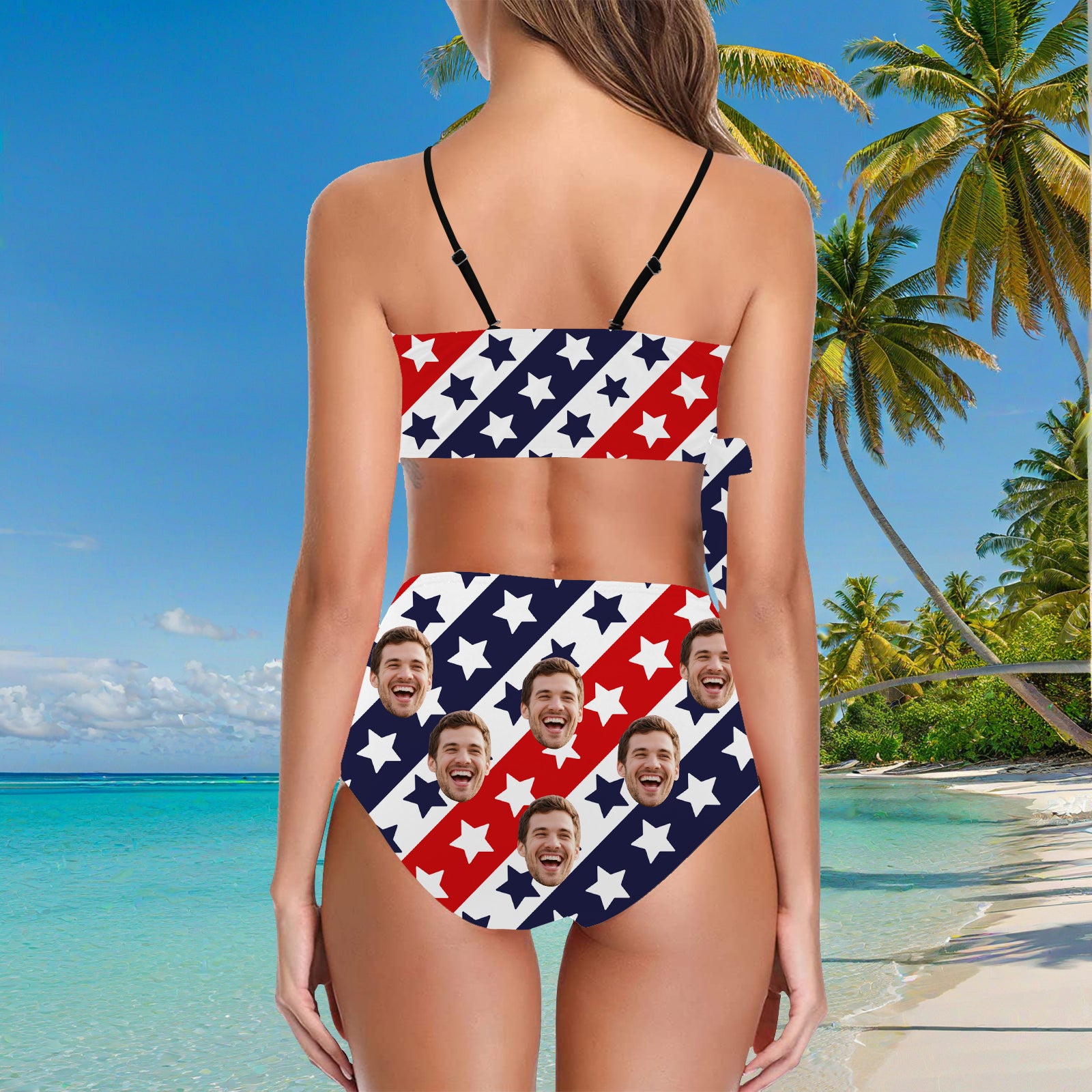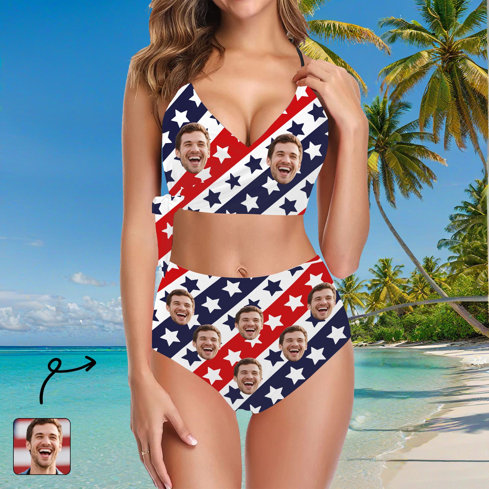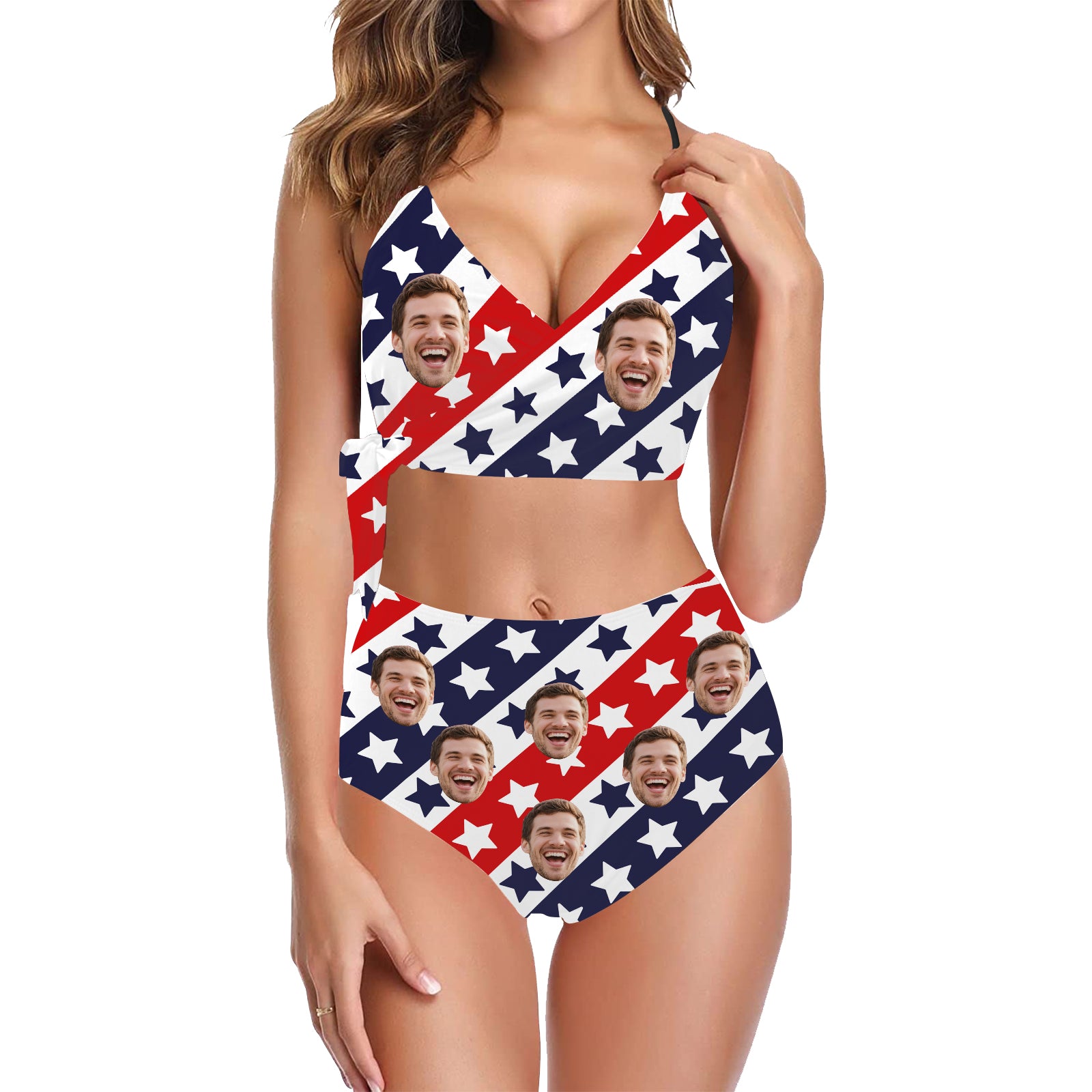 (Tax Included) Custom Face Americana Patchwork Bikini For Yacht Club Gatherings