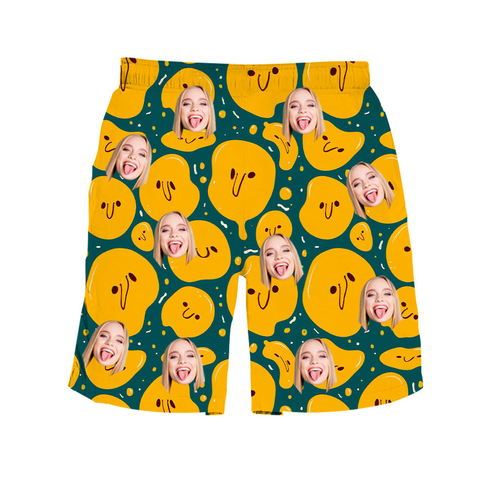 - Either to get a smile out of you or to use every day, you are going to love our custom beach shorts with photo. They are made with the best material and super soft you will enjoy wearing. Customize your beach shorts with your favorite photo face and make the perfect gift! Make the perfect beach shorts for family and friends that they will never forget about.