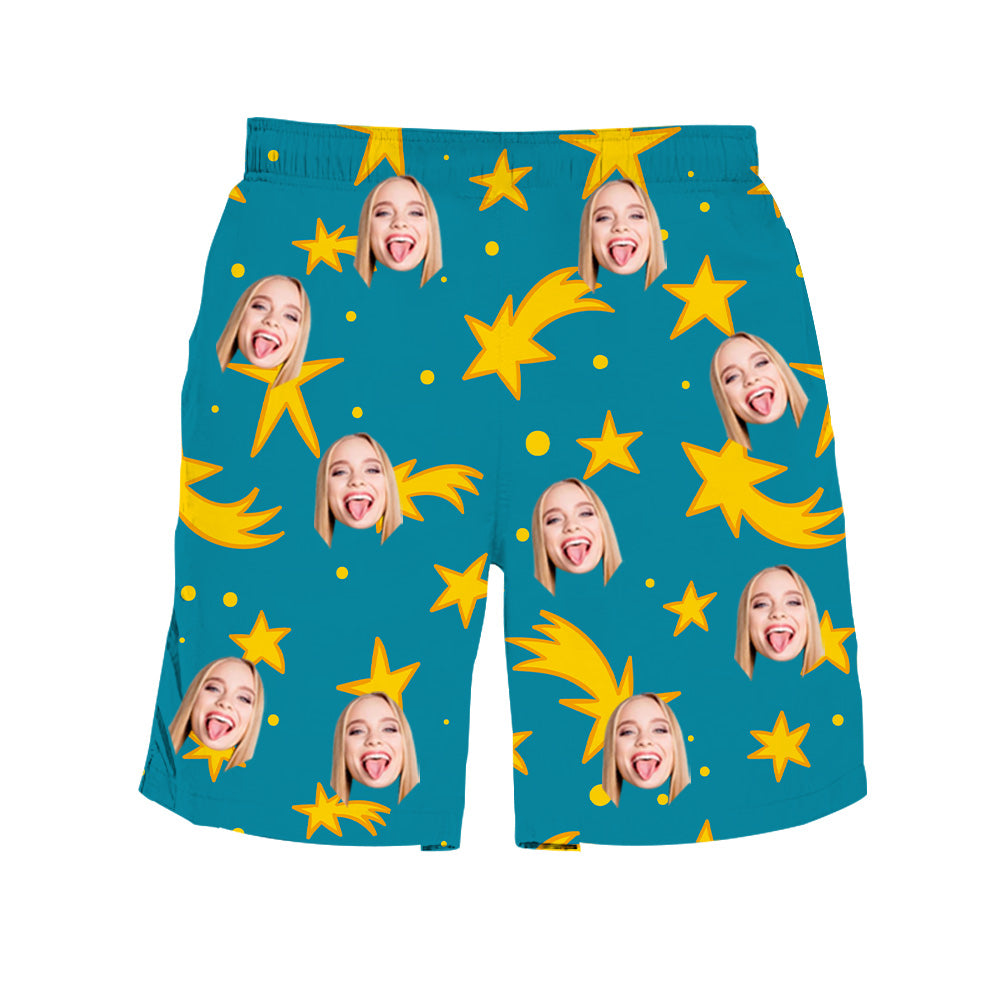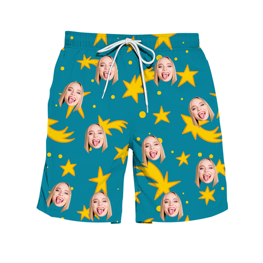 - Either to get a smile out of you or to use every day, you are going to love our custom beach shorts with photo. They are made with the best material and super soft you will enjoy wearing. Customize your beach shorts with your favorite photo face and make the perfect gift! Make the perfect beach shorts for family and friends that they will never forget about.
