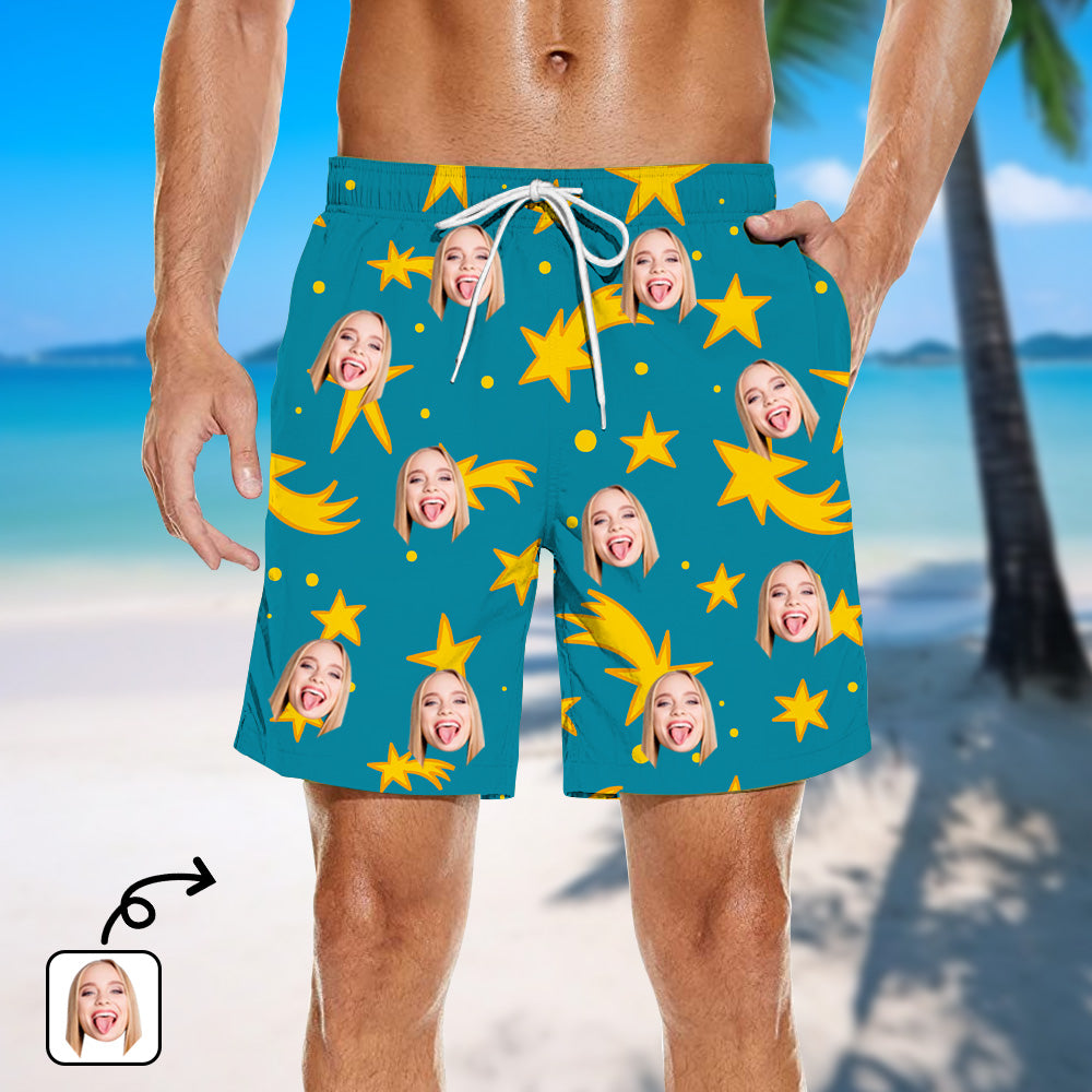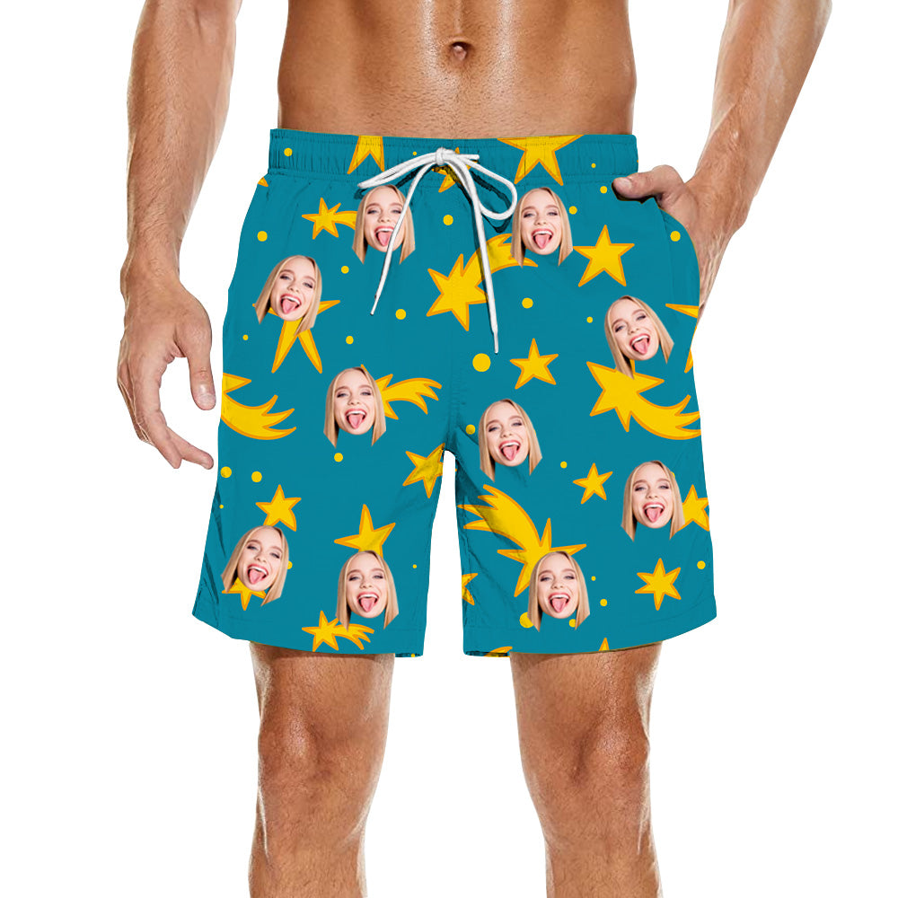 (Tax Included) Custom Face Beach Shorts With Shooting Stars For Summer Parties