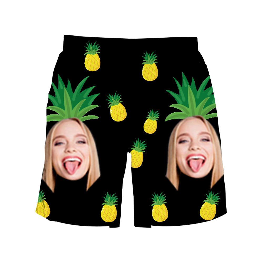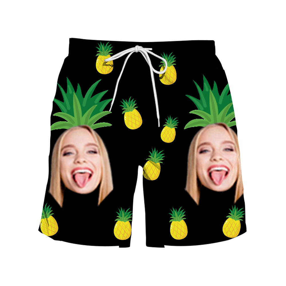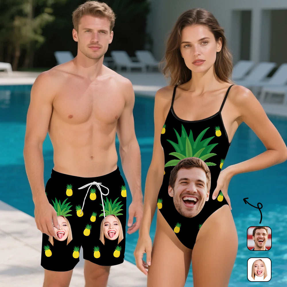 (Tax Included) Custom Face Black & Gold Pineapple Swimwear & Beach Shorts Duo For Luxury Pool Parties