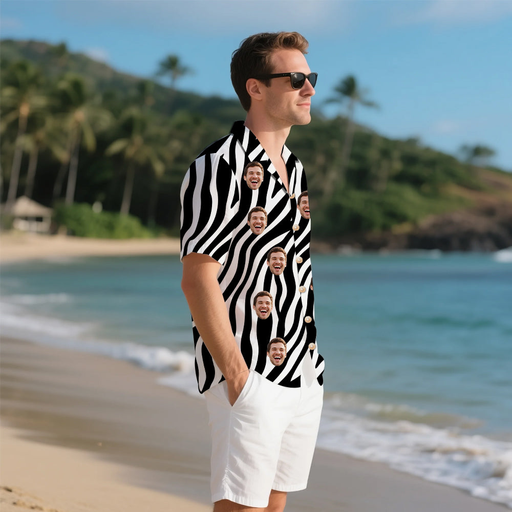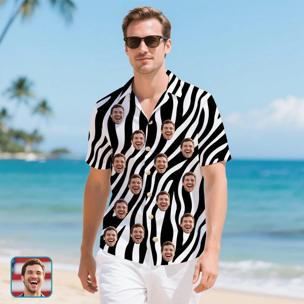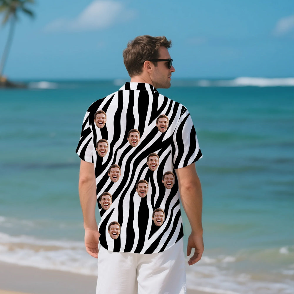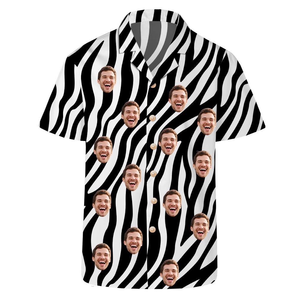 (Tax Included) Custom Face Black/White Zebra Shirt - Edgy Portrait Hawaiian Fashion