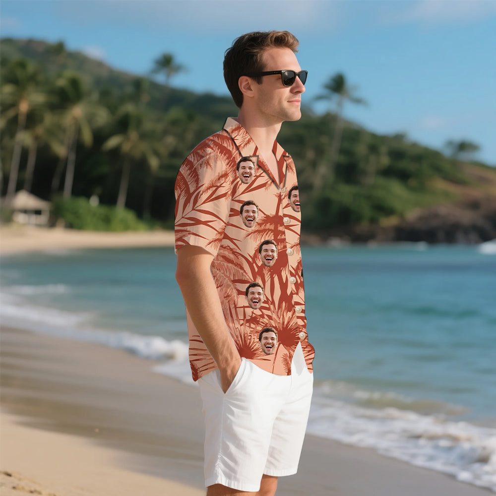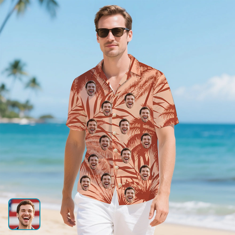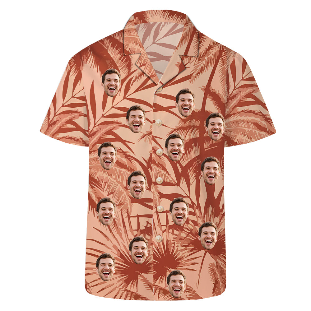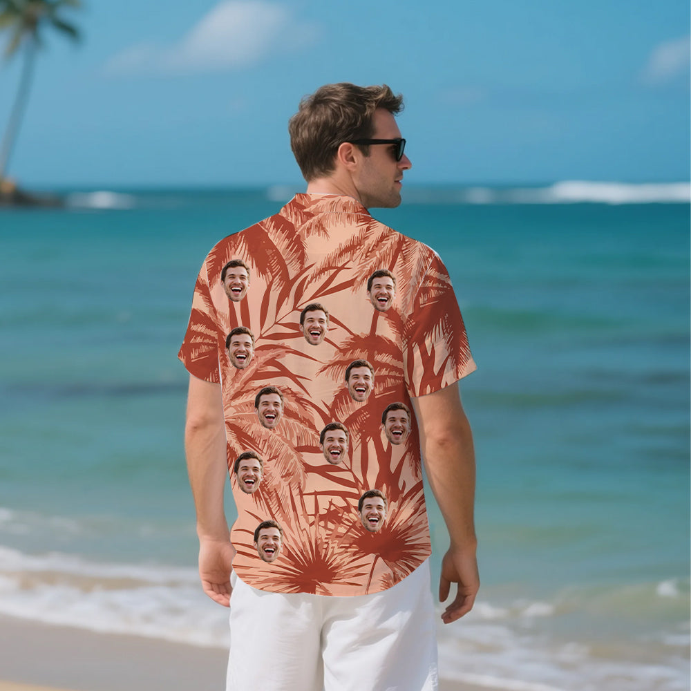 (Tax Included) Custom Face Brown Base Tropical Shirt Featuring Palm Leaves & Personalized Portrait