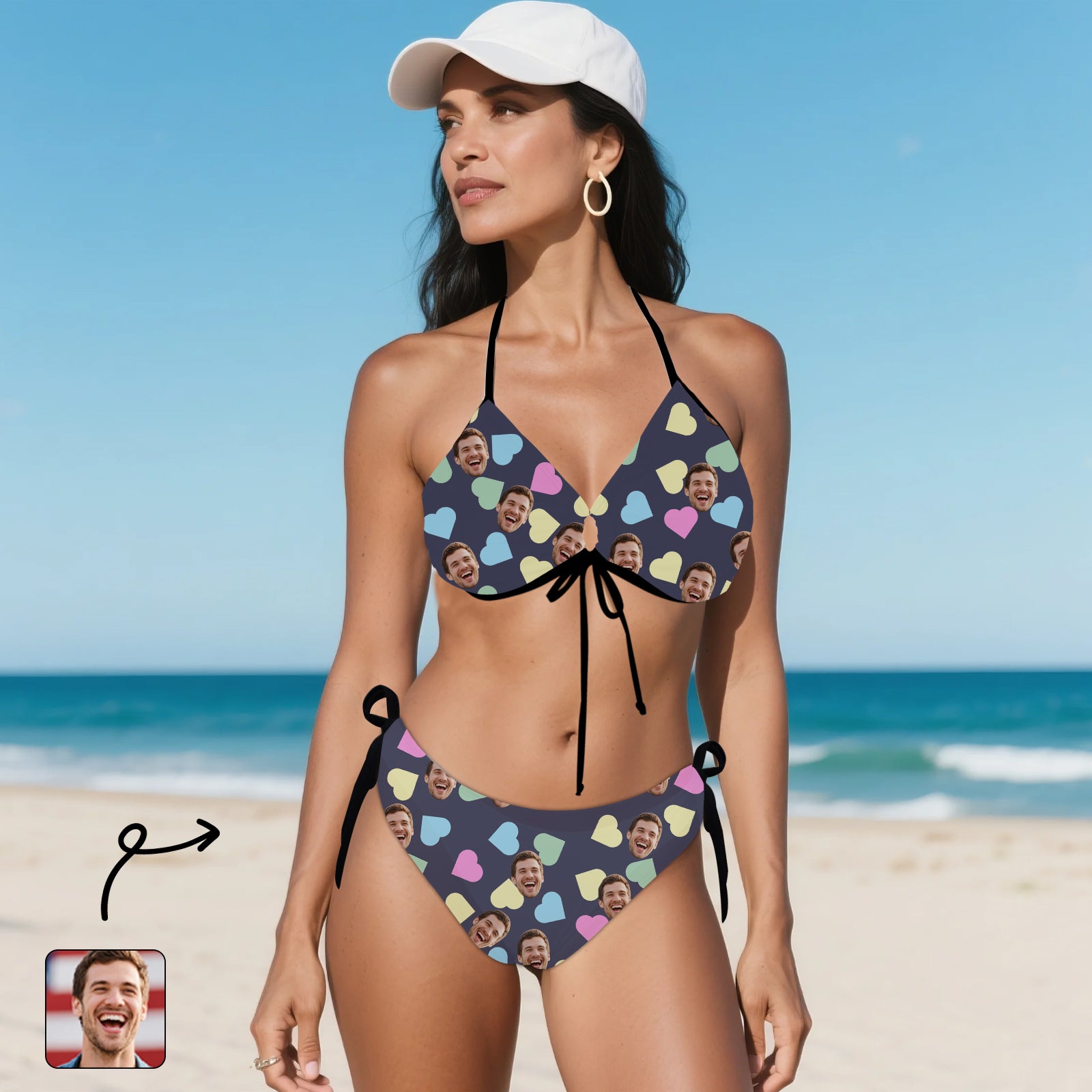 (Tax Included) Custom Face Colorful Heart Print Bikini - Personalized Portrait Swimwear For Summer Fun