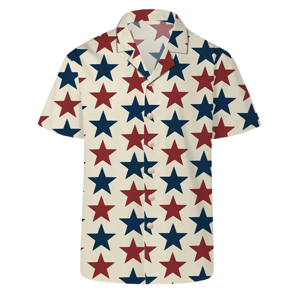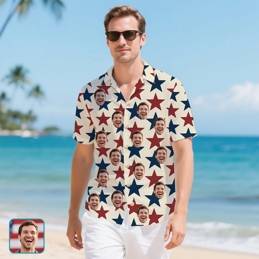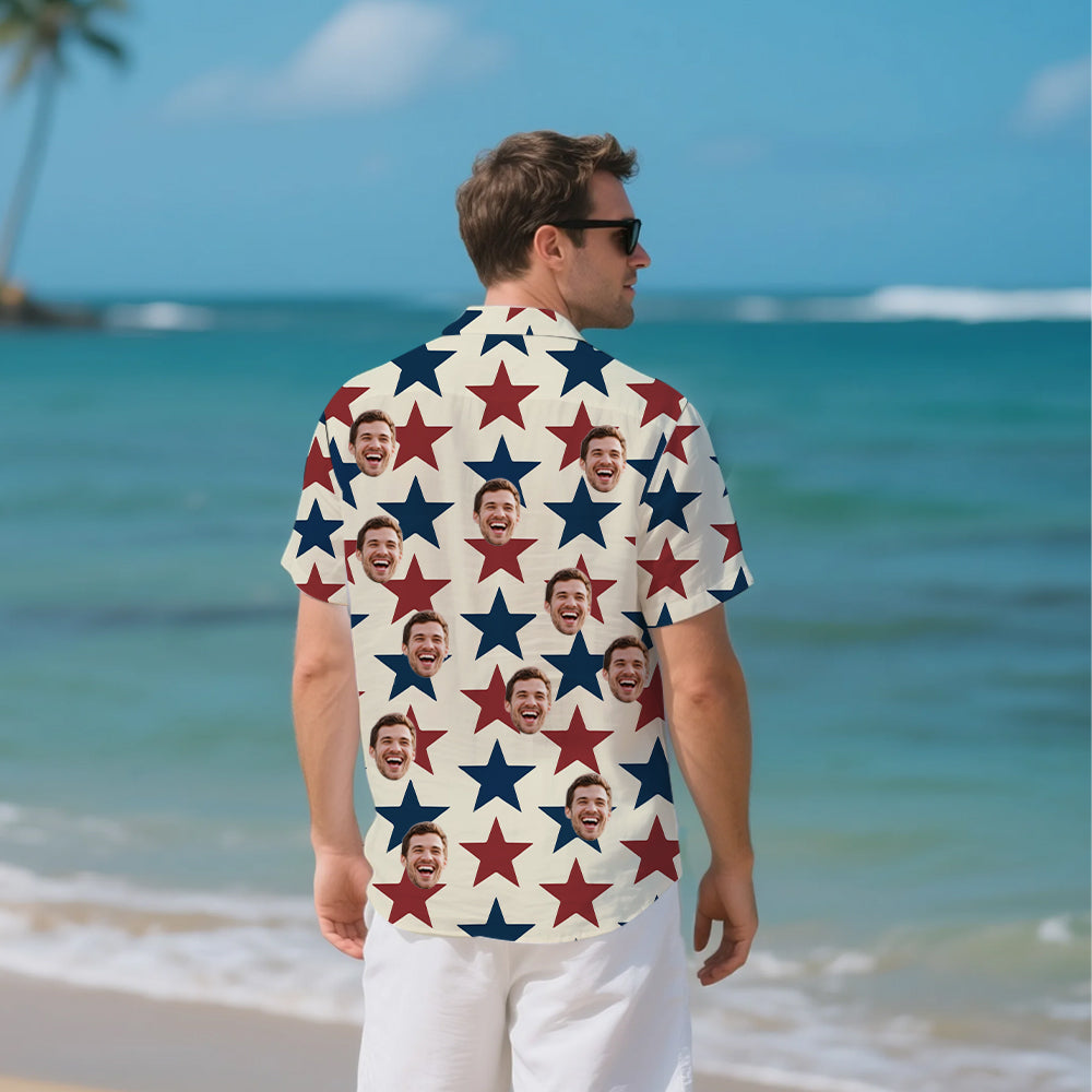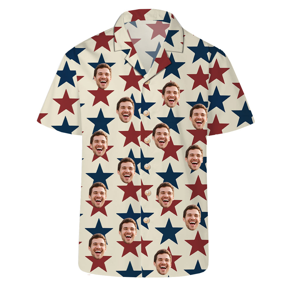 (Tax Included) Custom Face Cream Base Flag Shirt - Red/Blue Star Portrait Casual Wear