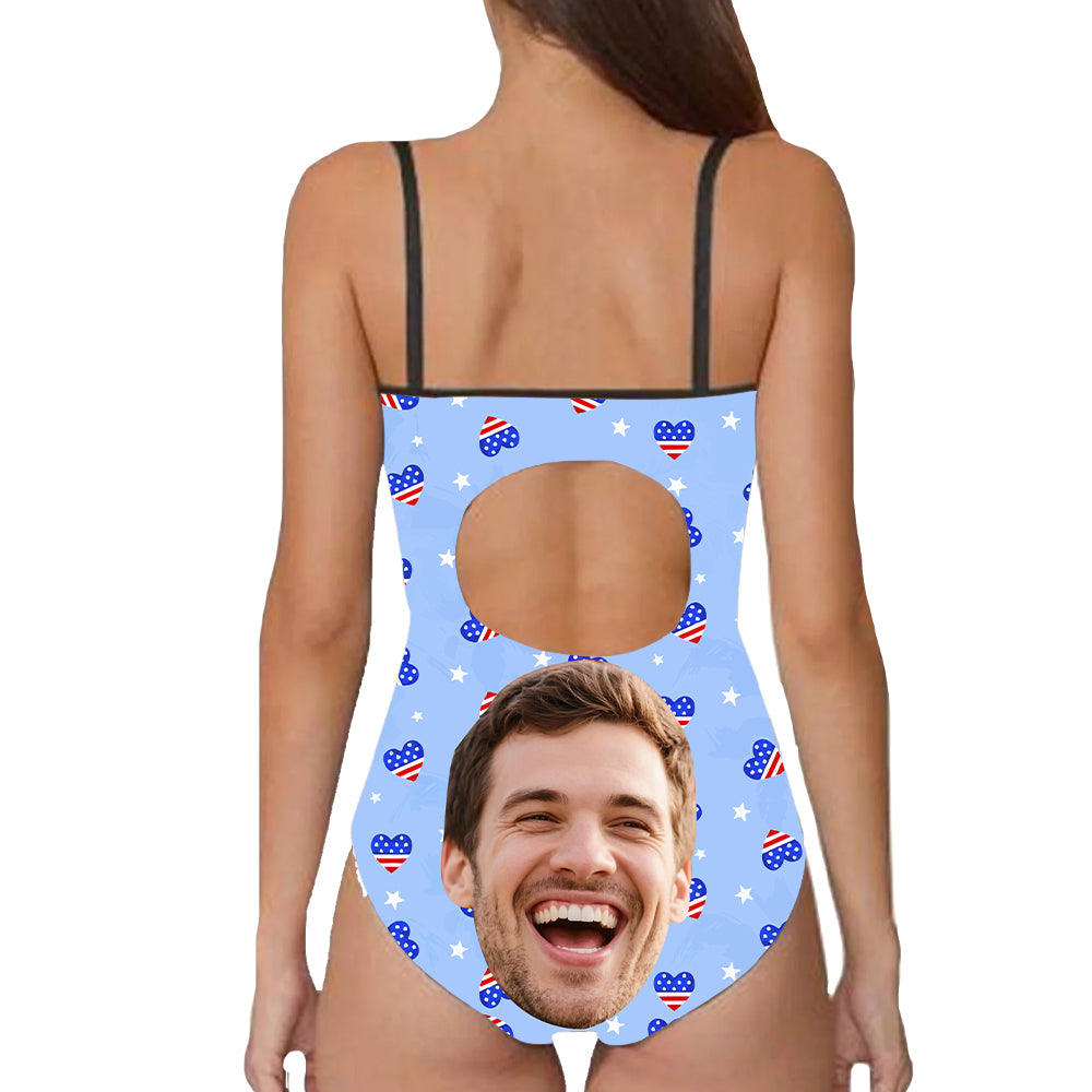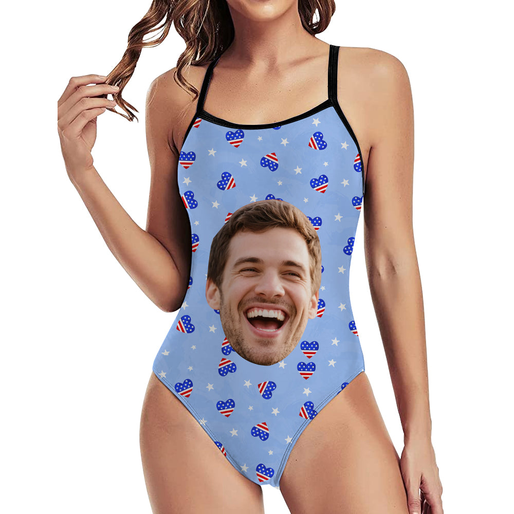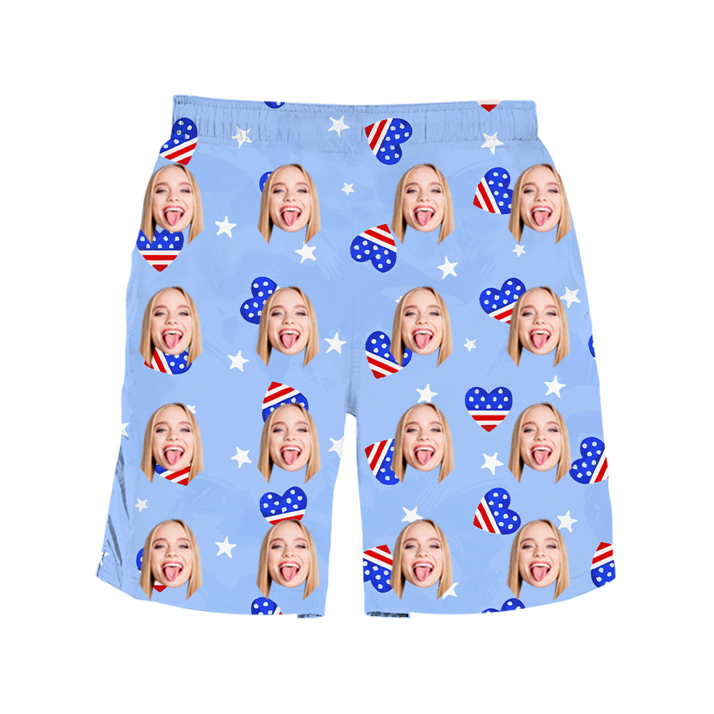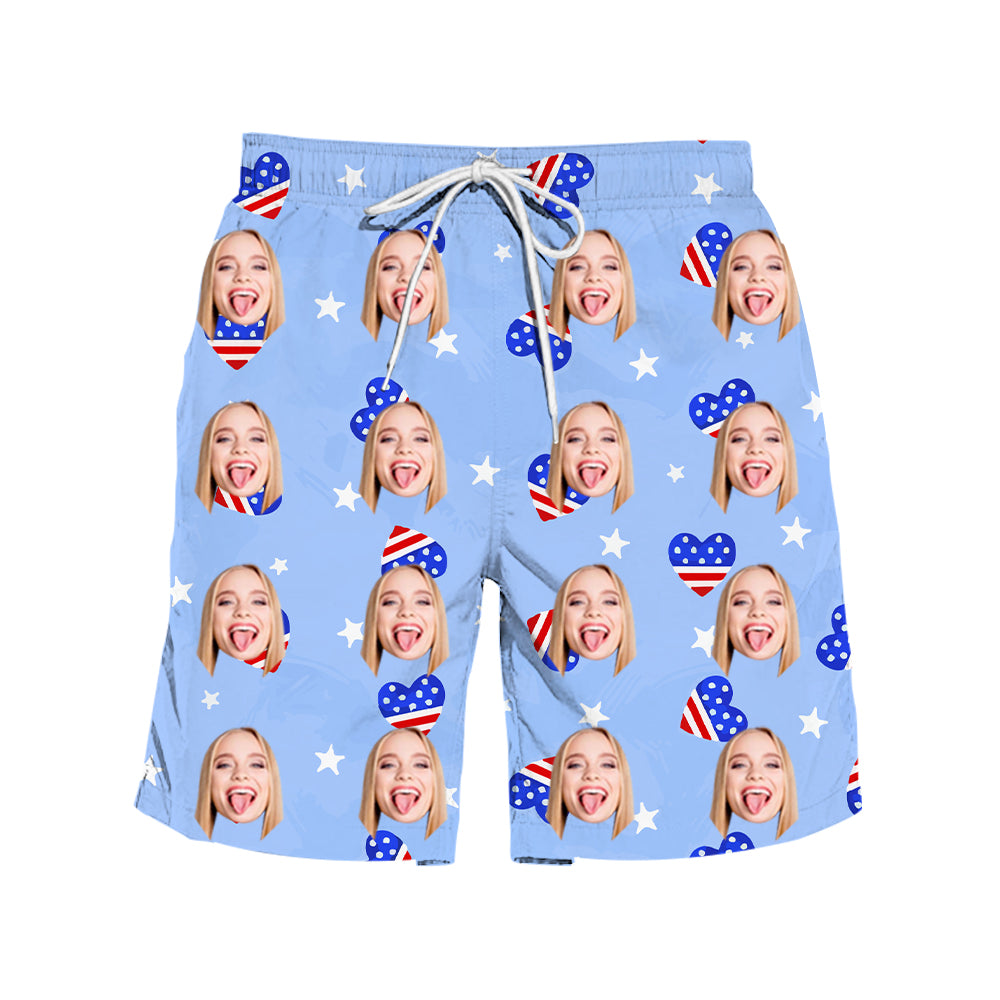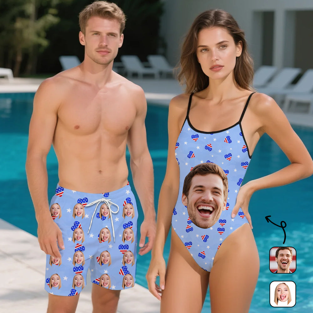 (Tax Included) Custom Face Heart Flag Couple's Swim Sets & Board Shorts For Patriotic Getaways