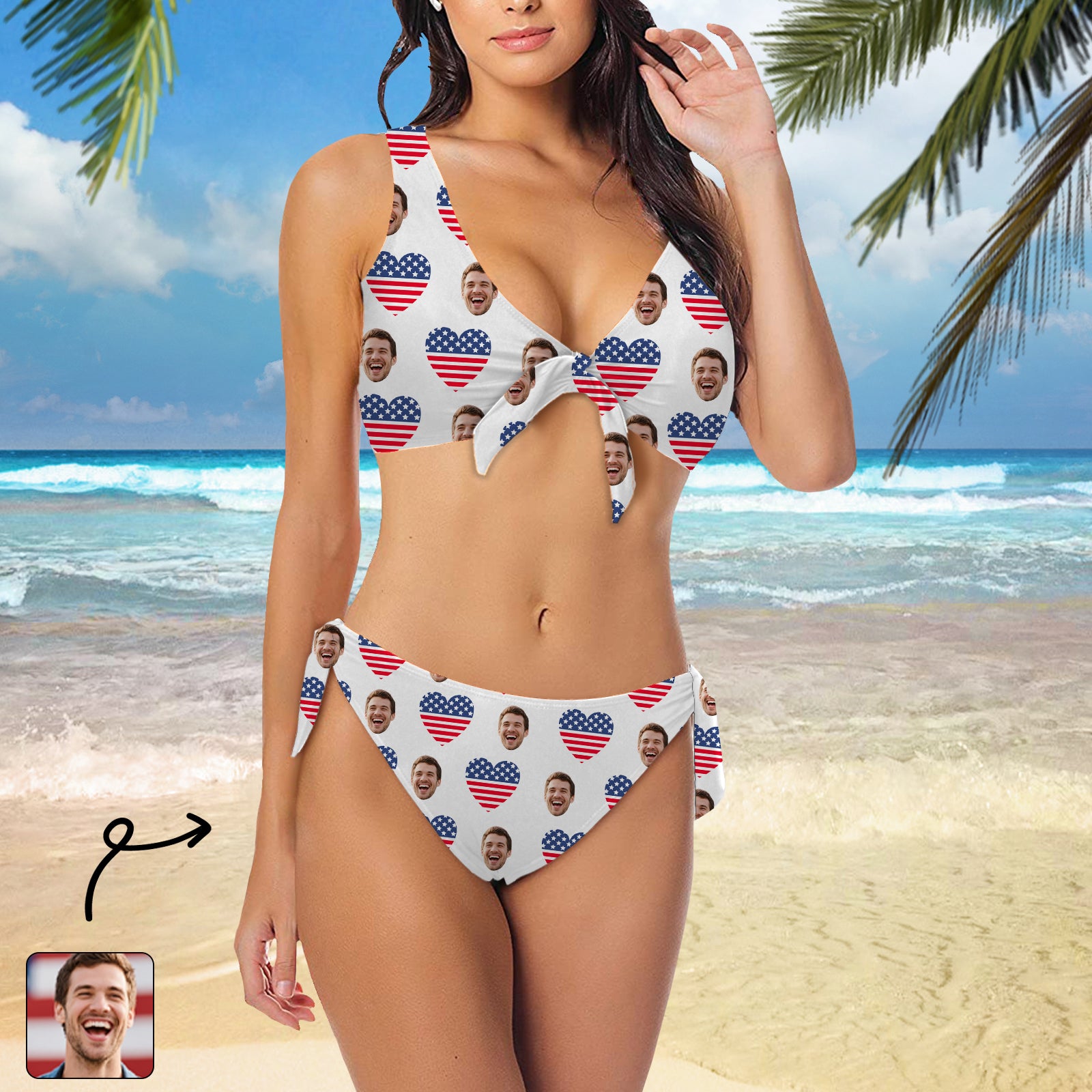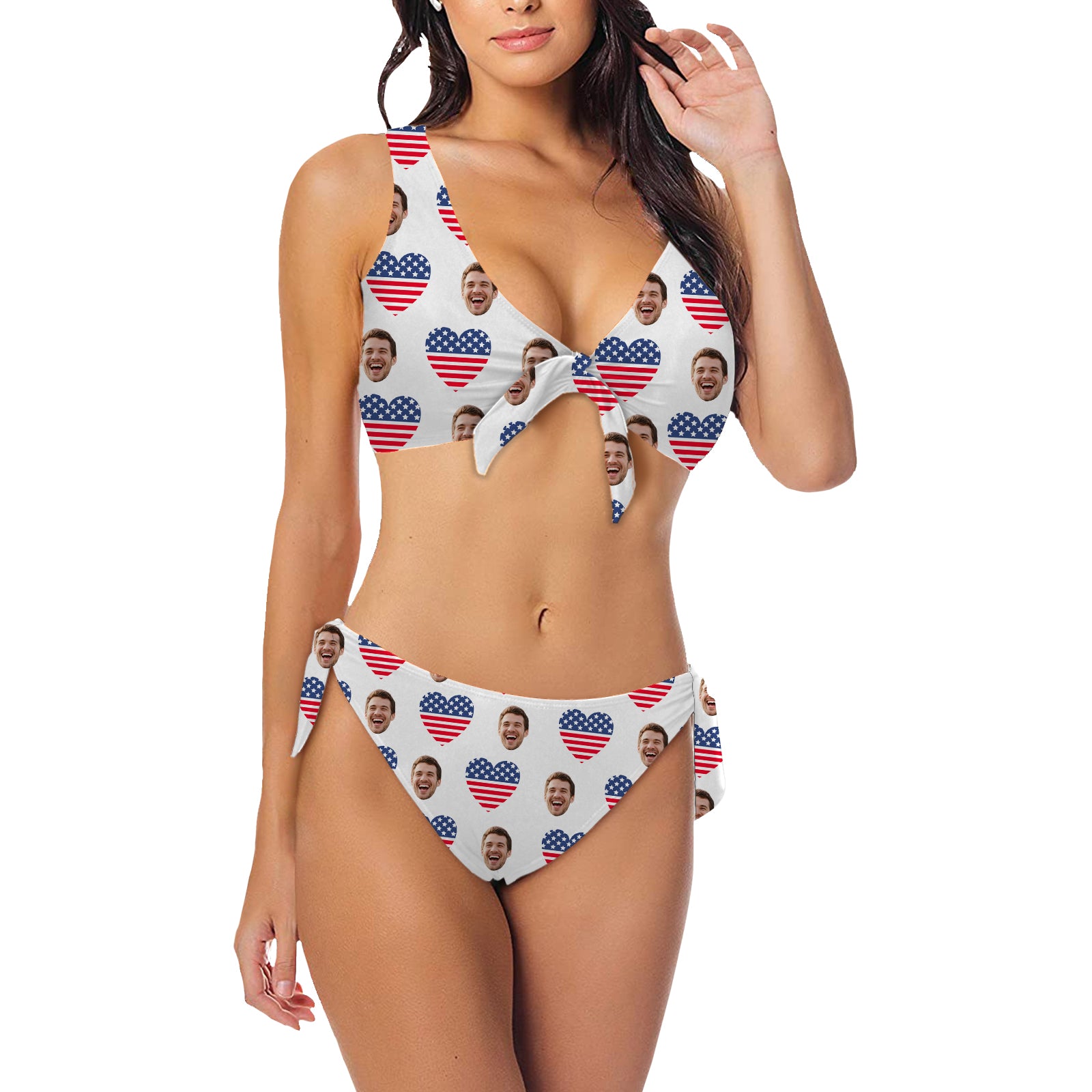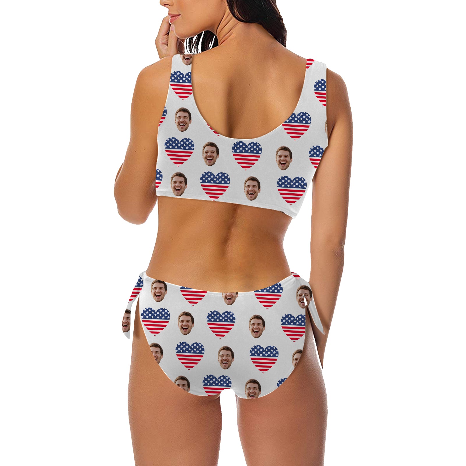 (Tax Included) Custom Face Heart-Shaped Flag Bikini - Unique Portrait Customization