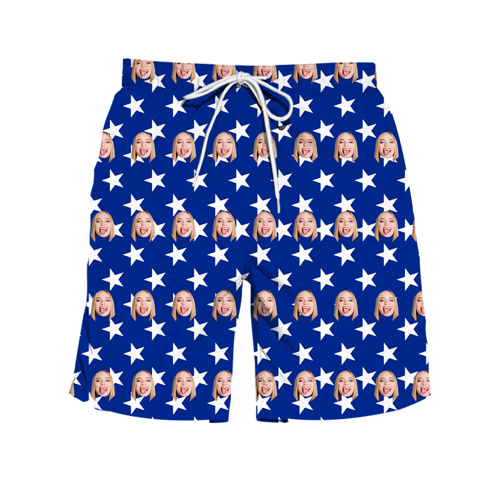 - Either to get a smile out of you or to use every day, you are going to love our custom beach shorts with photo. They are made with the best material and super soft you will enjoy wearing. Customize your beach shorts with your favorite photo face and make the perfect gift! Make the perfect beach shorts for family and friends that they will never forget about.