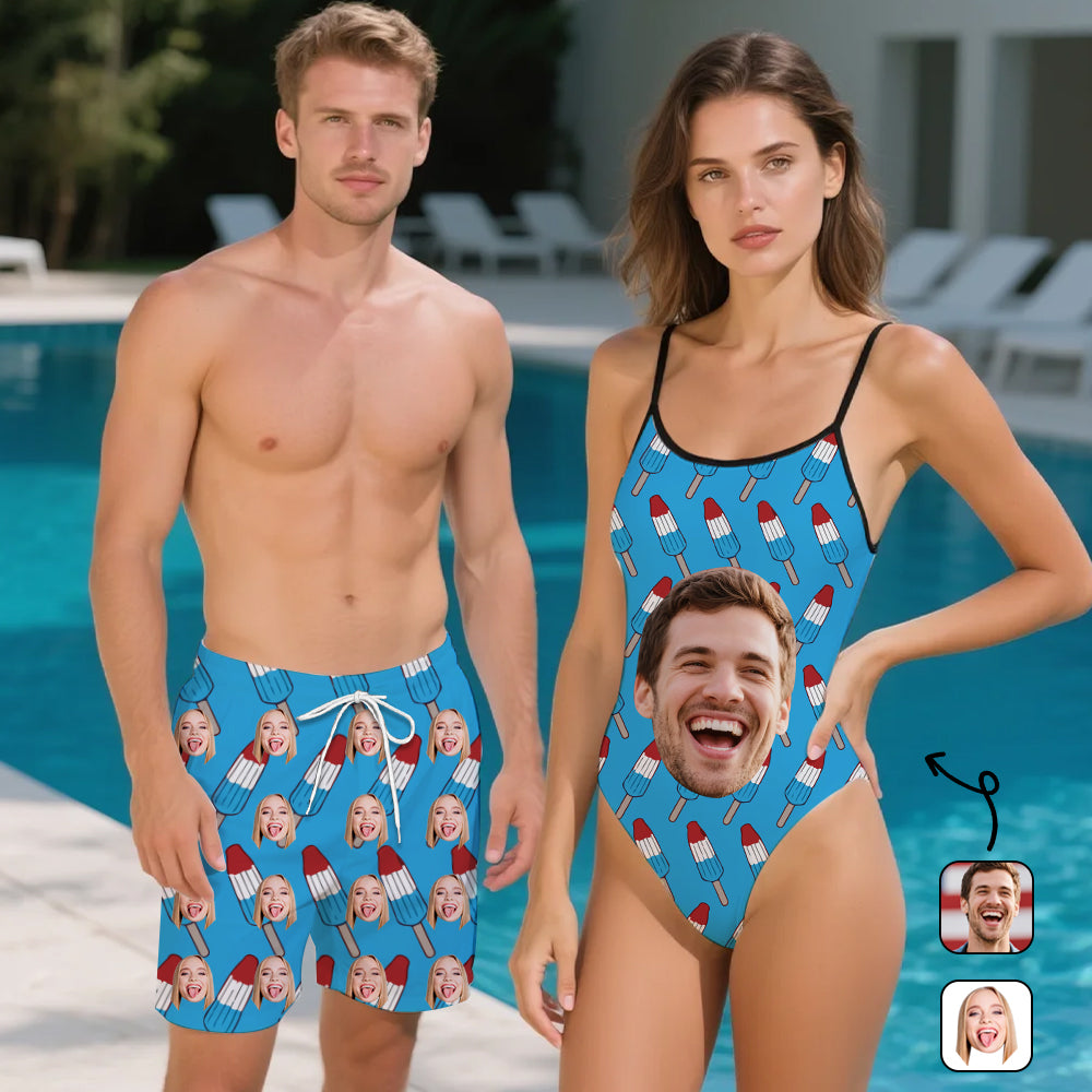 - Either to get a smile out of you or to use every day, you are going to love our bathing suits custom with photo. They are made with the best material and super soft you will enjoy wearing.Customize your swimsuit with your favorite photo face and make the perfect gift!Make the perfect swimsuit for family and friends that they will never forget about.