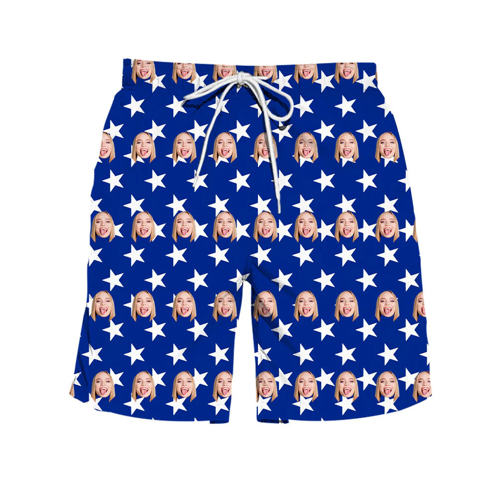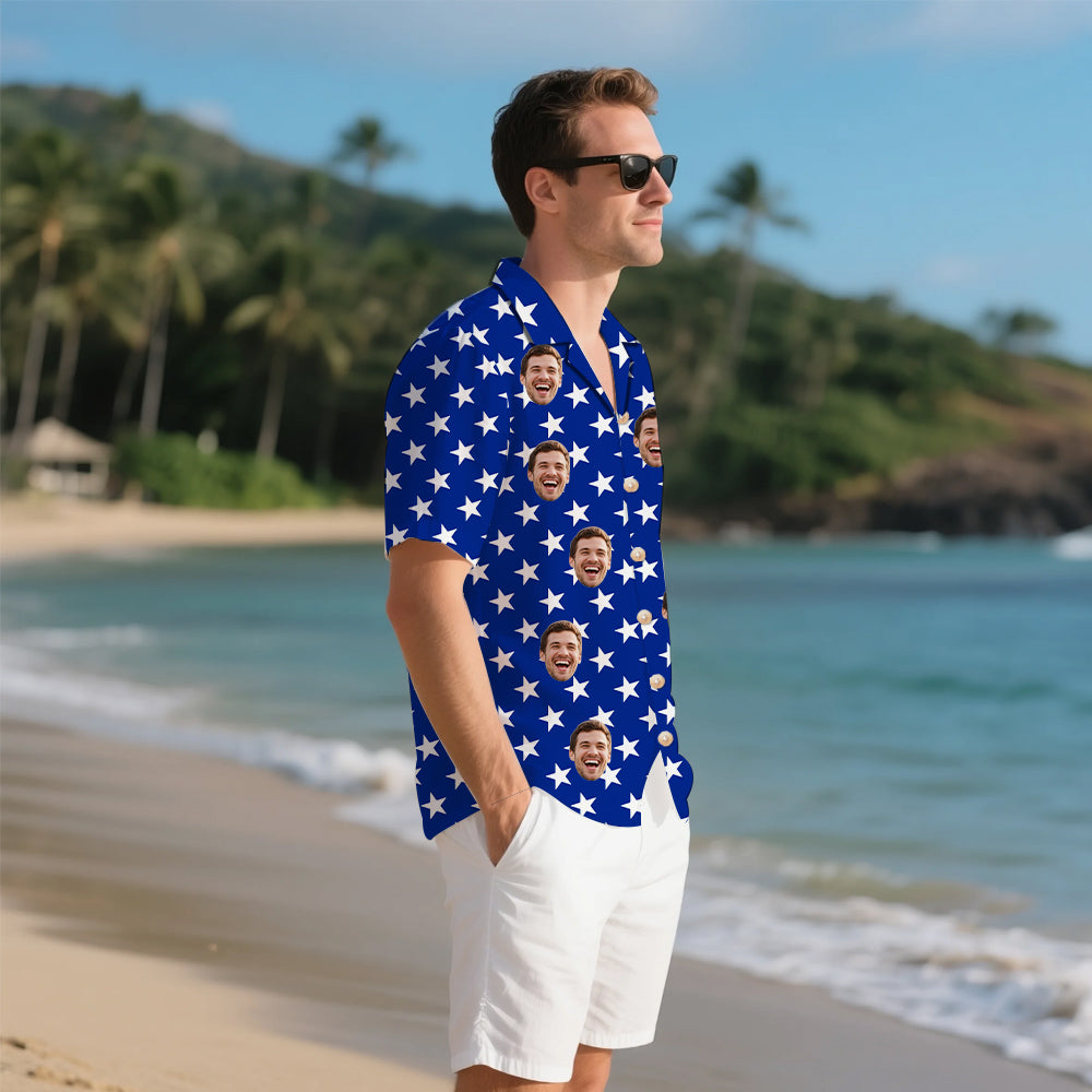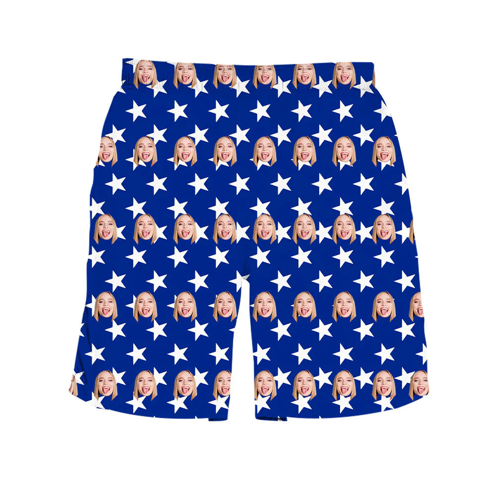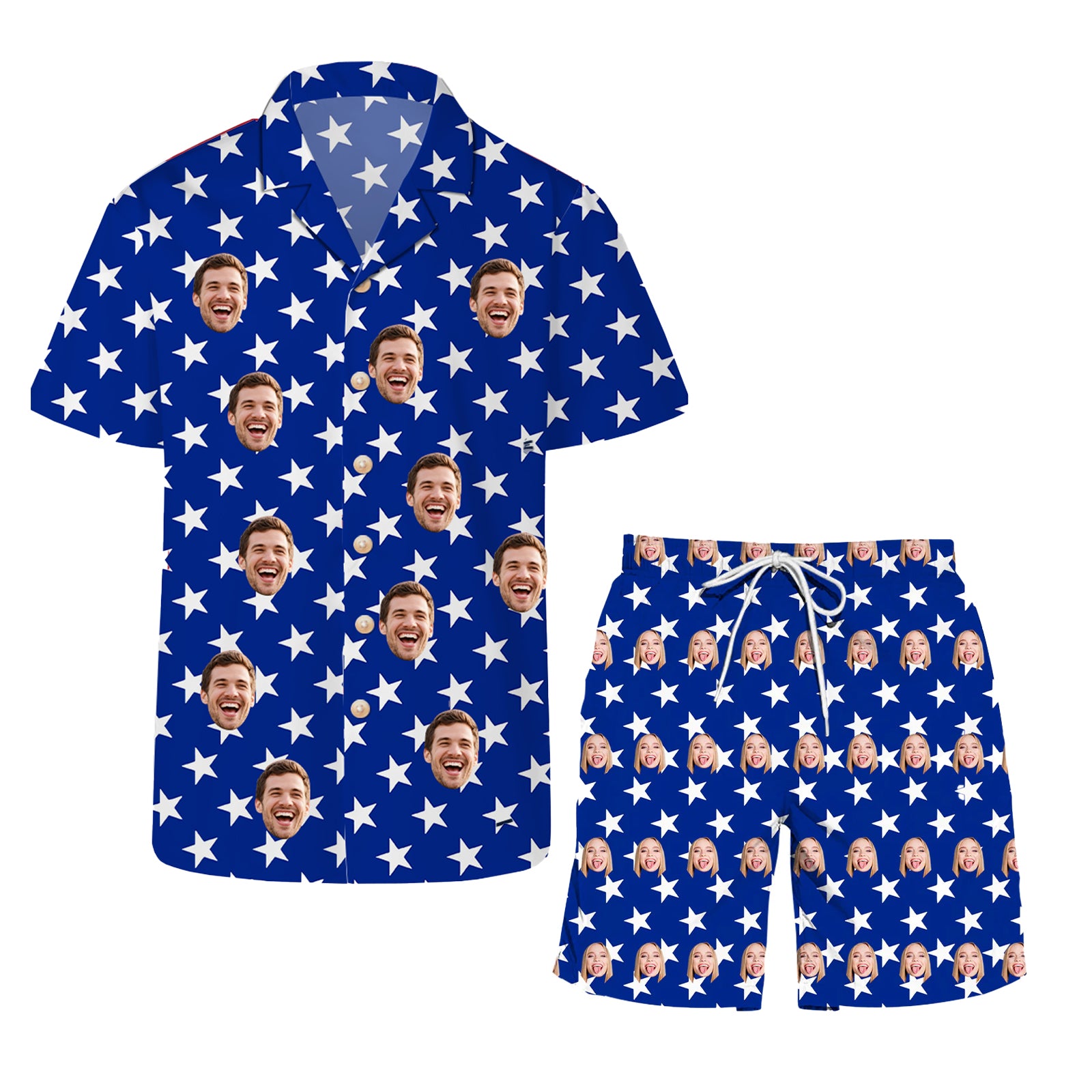 (Tax Included) Custom Face July 4th Themed Outfit With Personalized Beach Shorts & Hawaiian Shirt