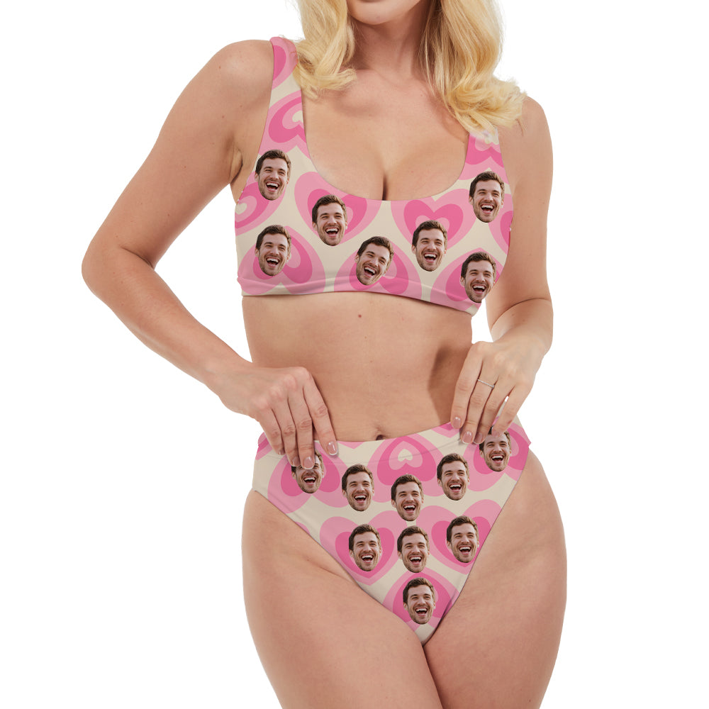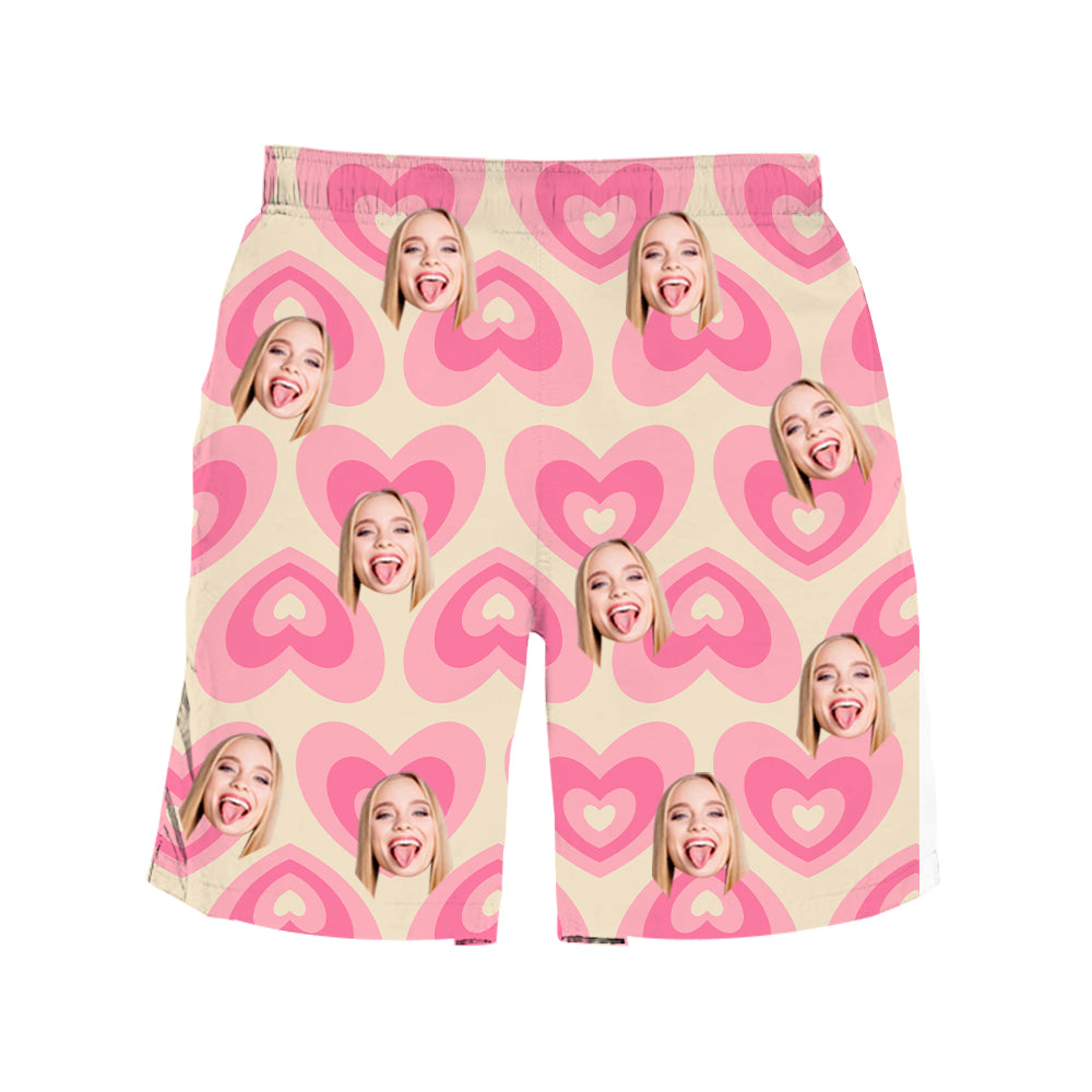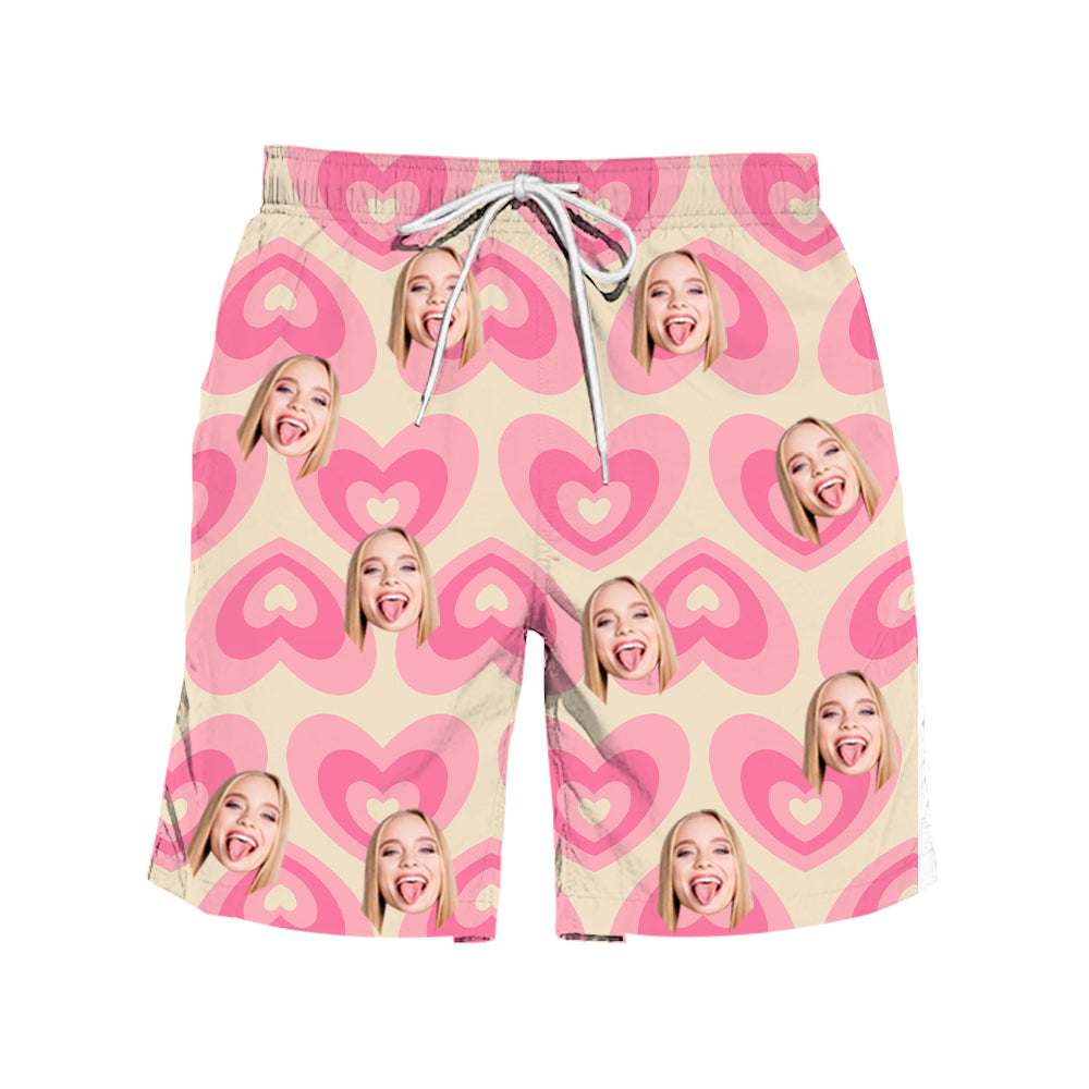 (Tax Included) Custom Face Matching Pink Heart Swim Set & Board Shorts For Summer Vacation Vibes