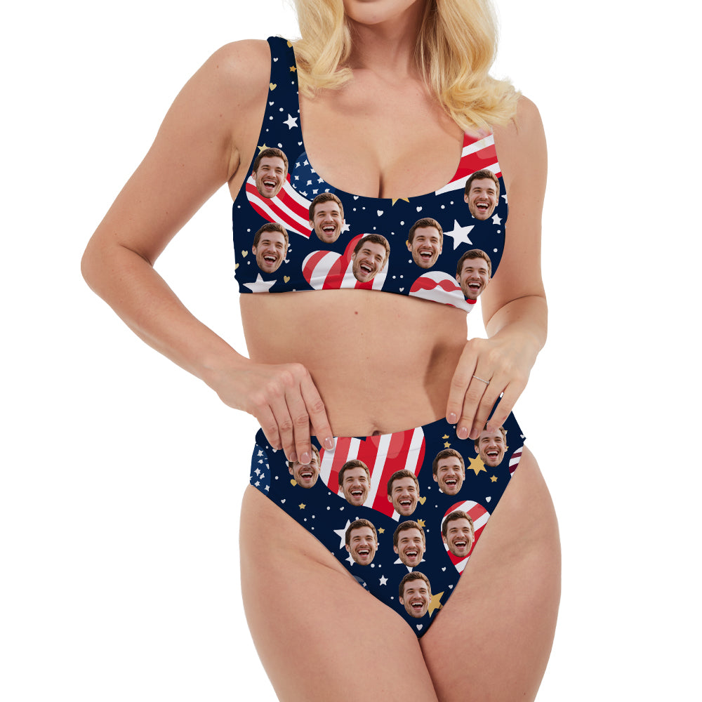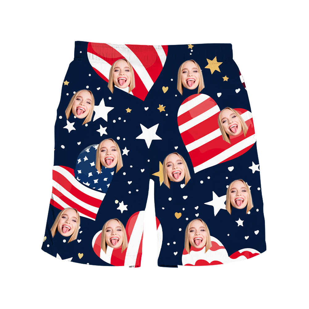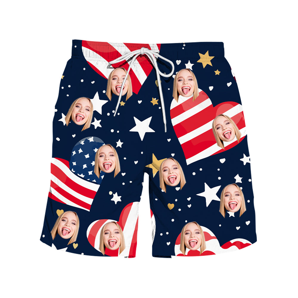 (Tax Included) Custom Face Navy Blue Heart Flag Swimwear For Stylish Poolside Looks