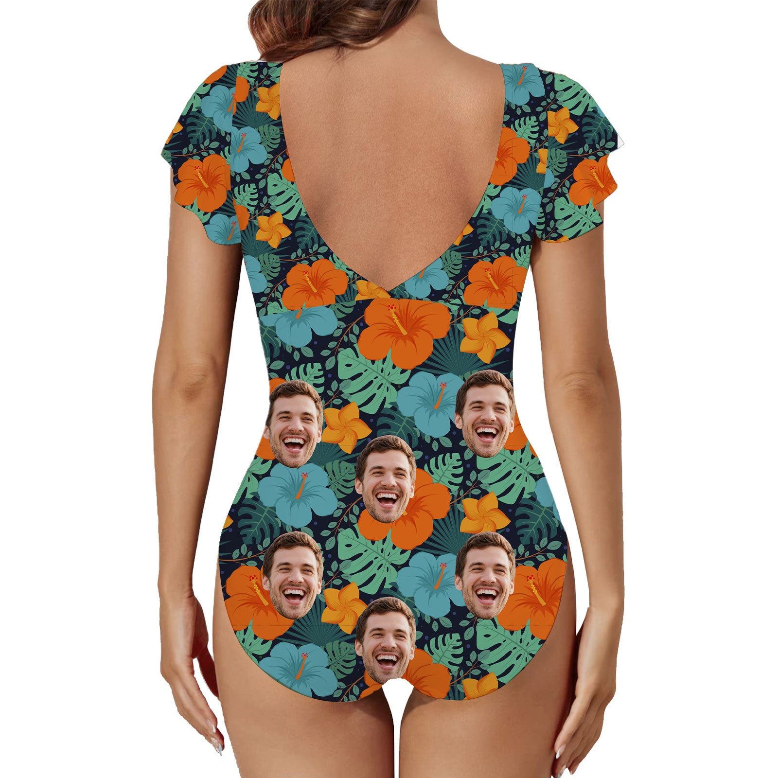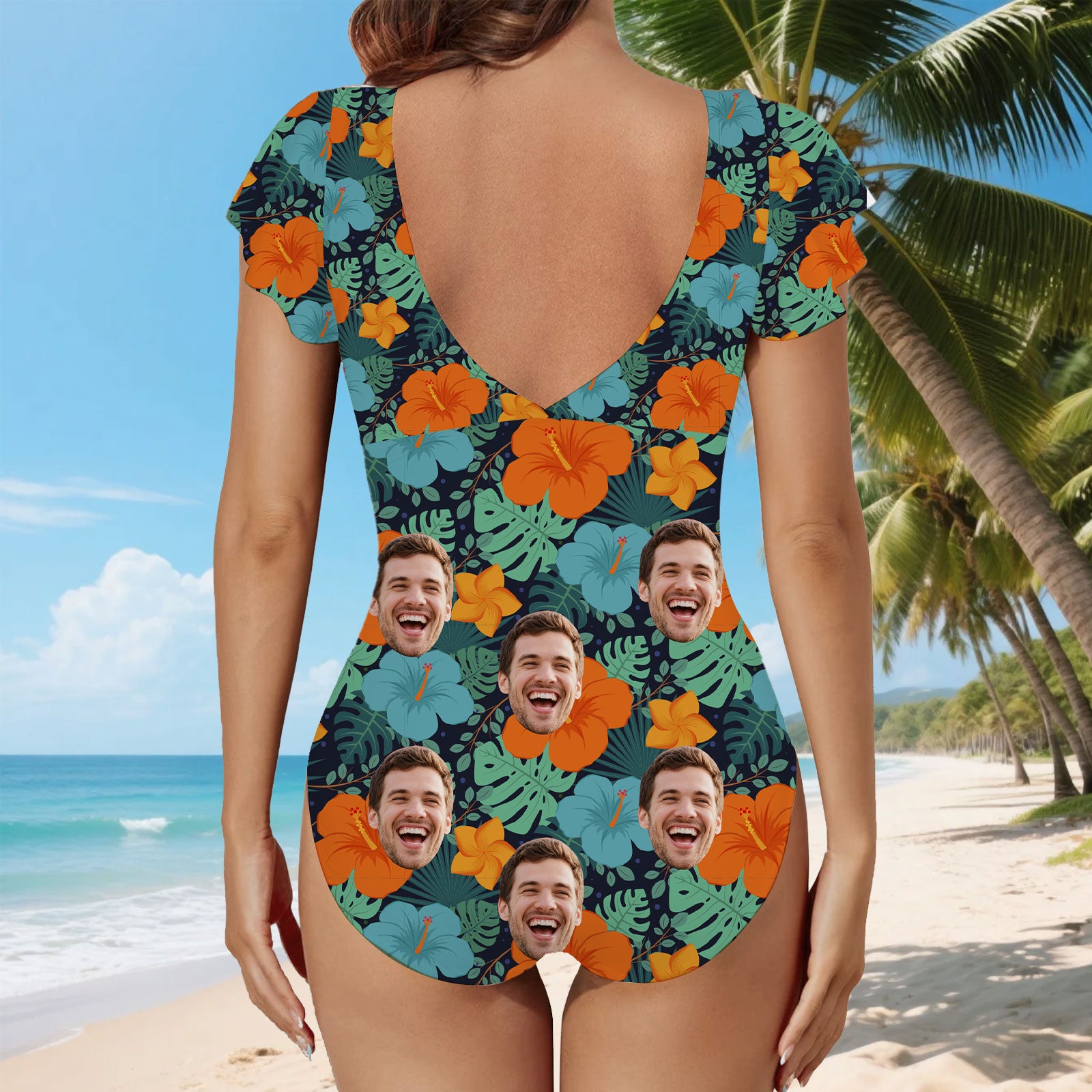 (Tax Included) Custom Face Orange Blossom Swimsuit - Green Leaf Accents