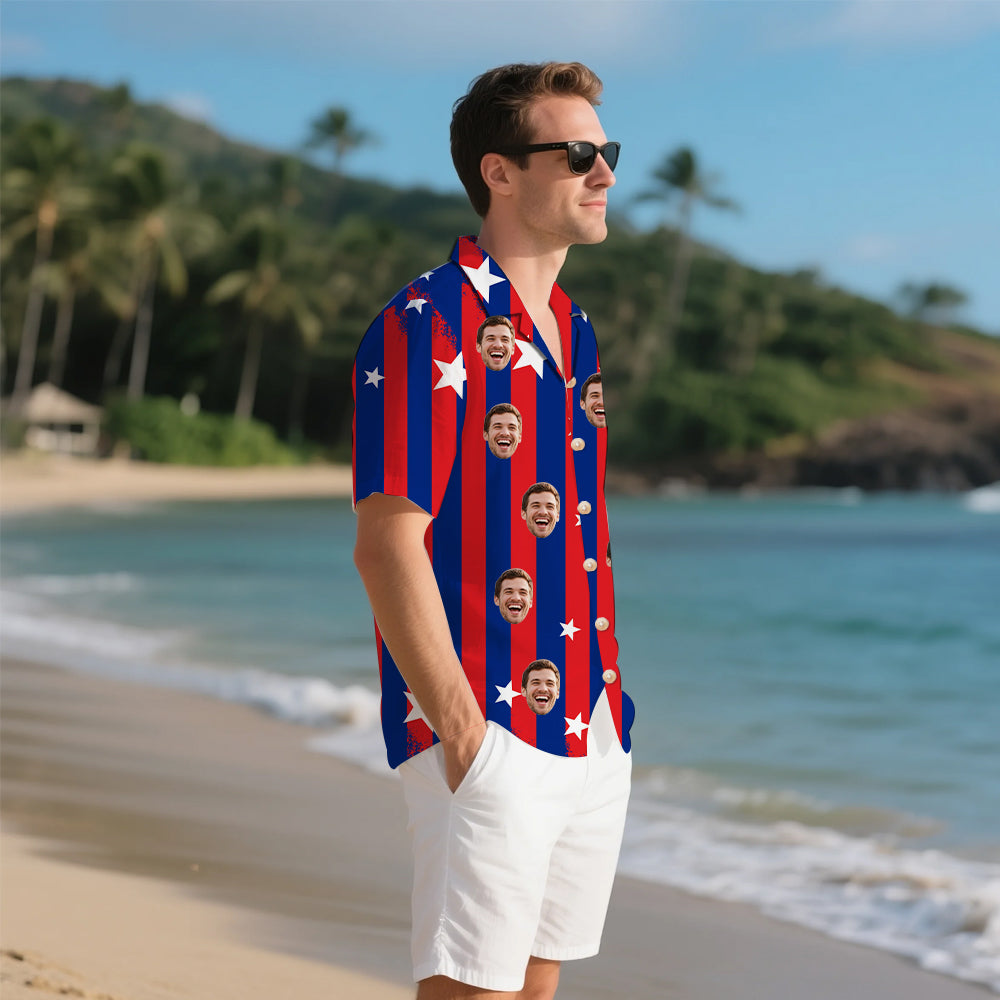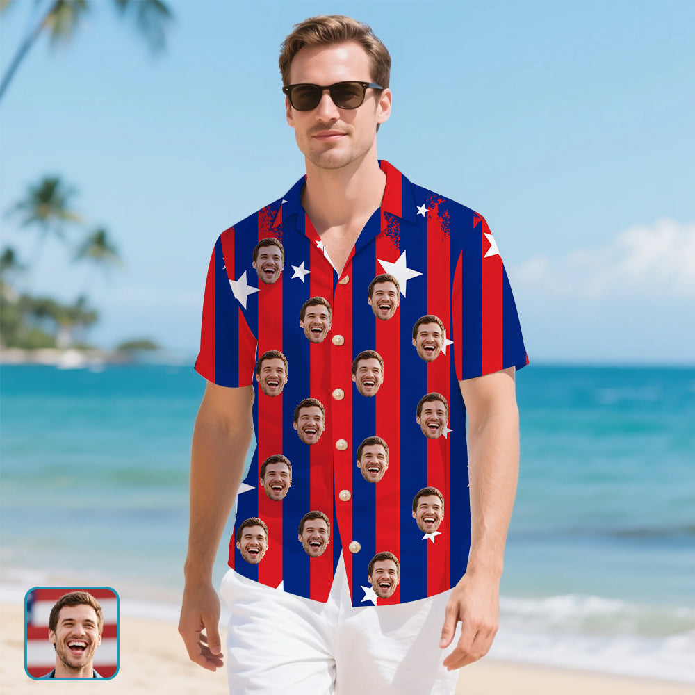 (Tax Included) Custom Face Oversized Star Flag Shirt - Statement Portrait Design