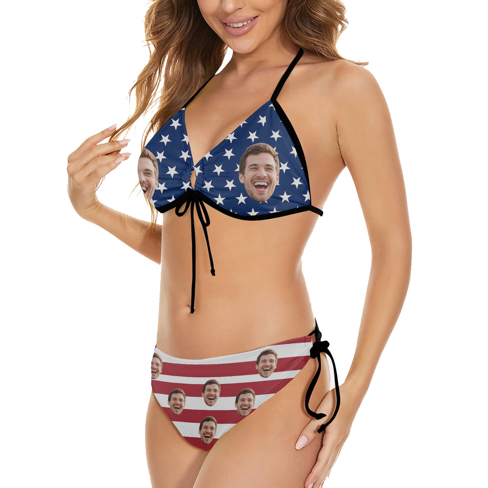 (Tax Included) Custom Face Patriotic Bikini With Star-Spangled Design For 4th Of July Pool Parties