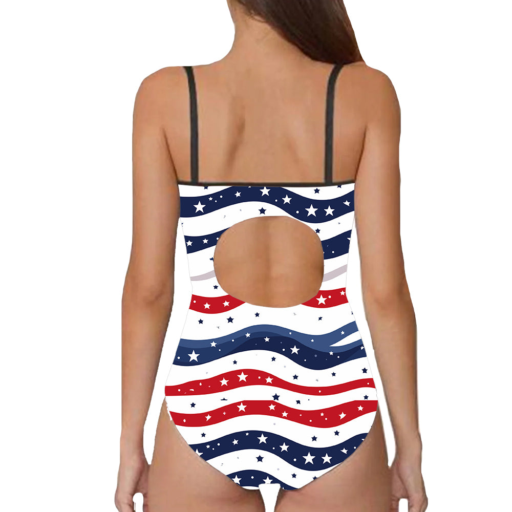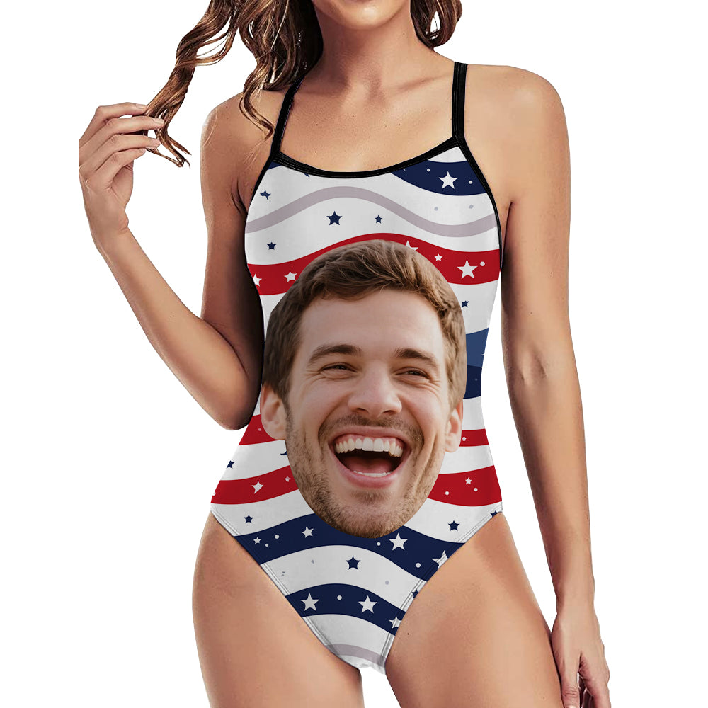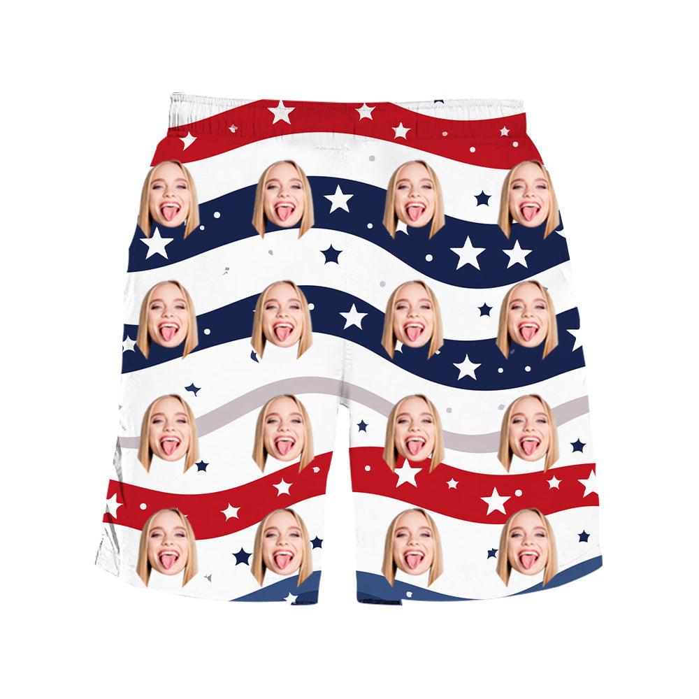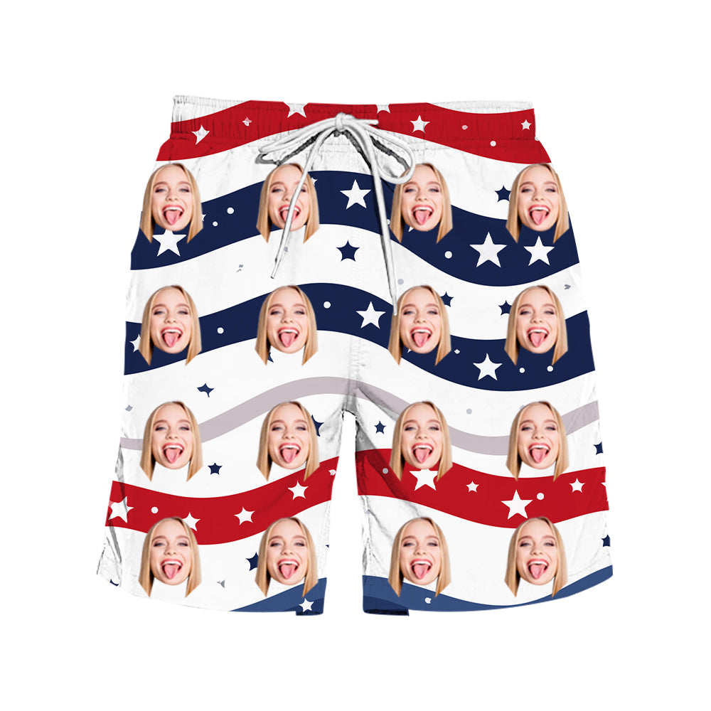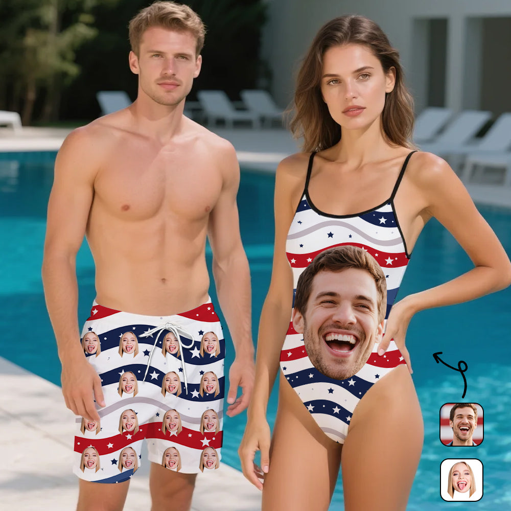 (Tax Included) Custom Face Patriotic Couple's American Flag Swim Sets For 4th Of July Beach Celebrations