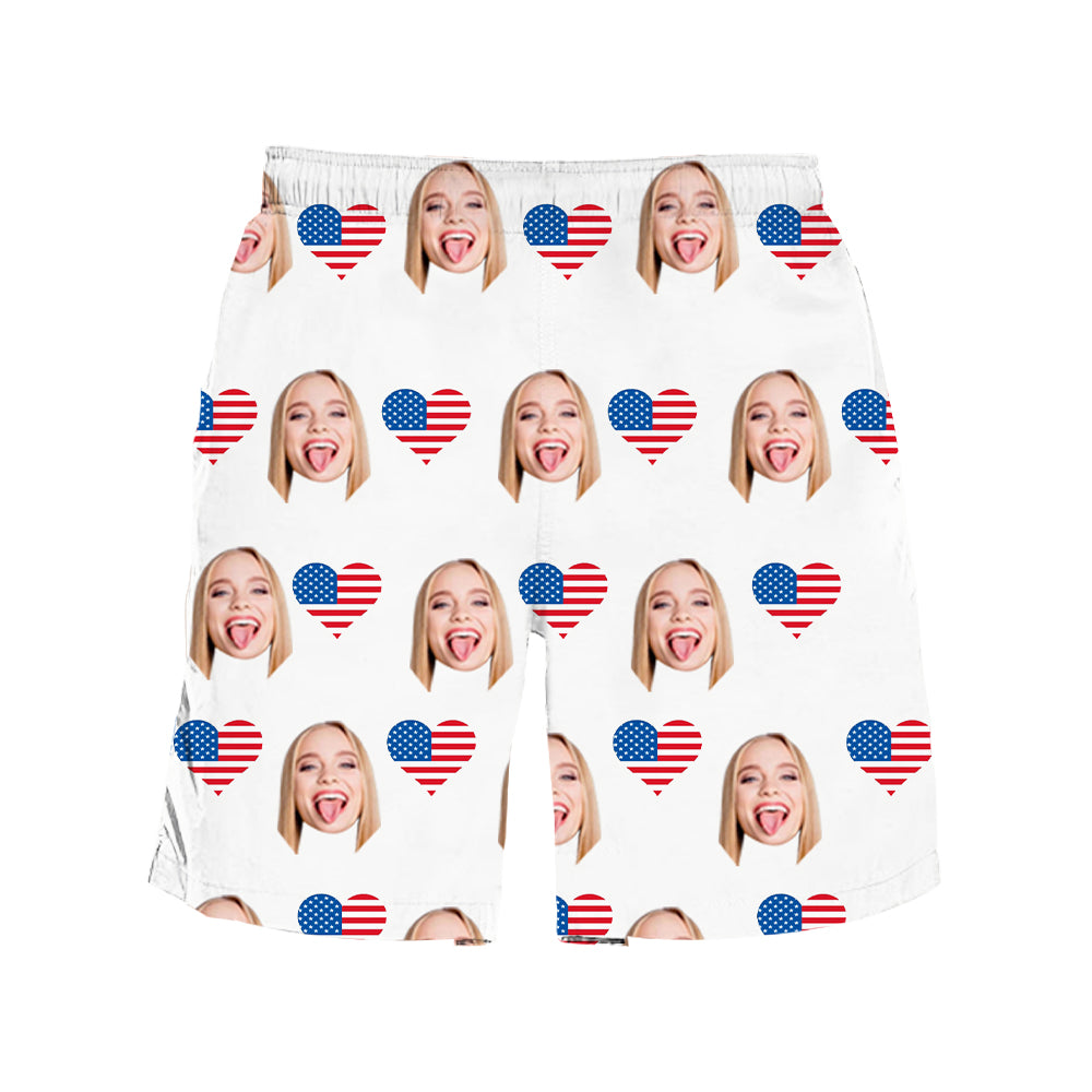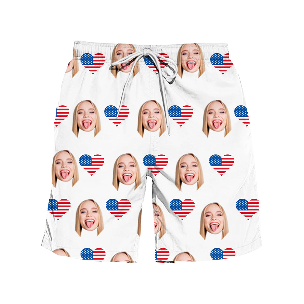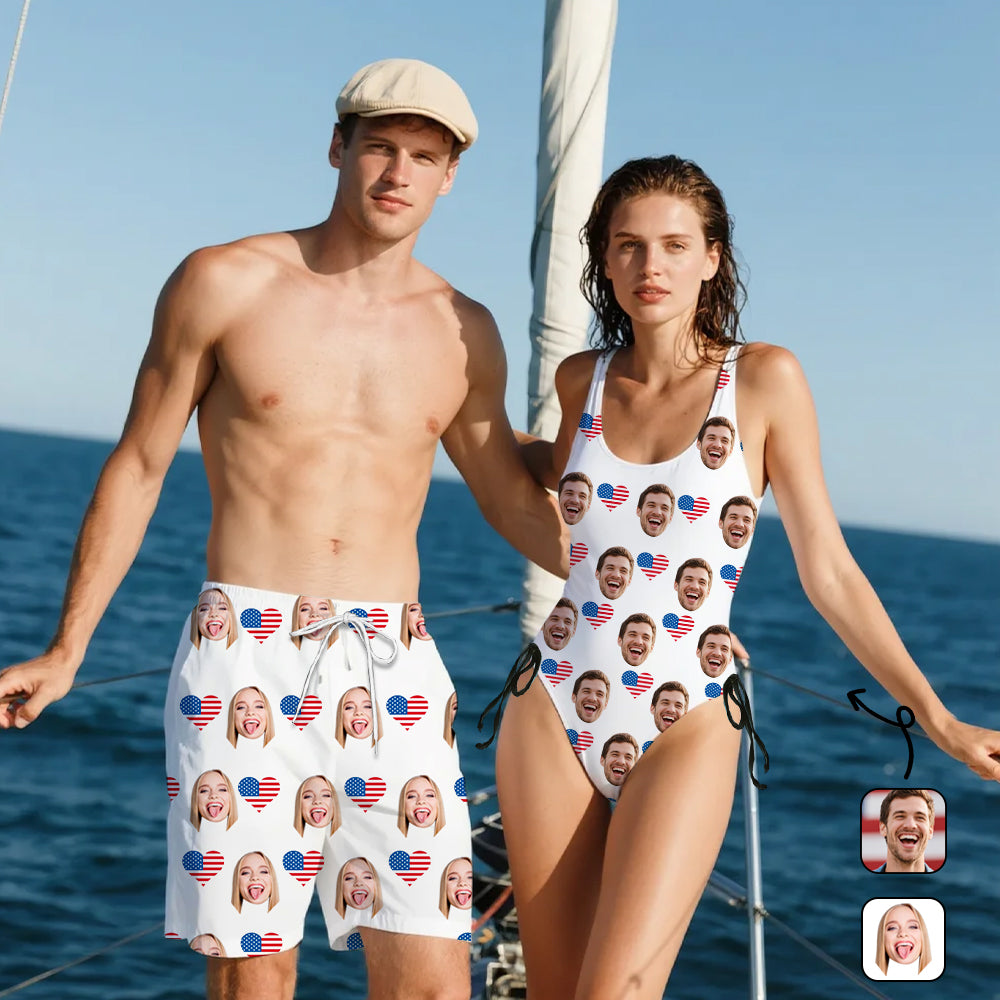 (Tax Included) Custom Face Patriotic Red & Blue Heart Swimwear For Ocean Adventures