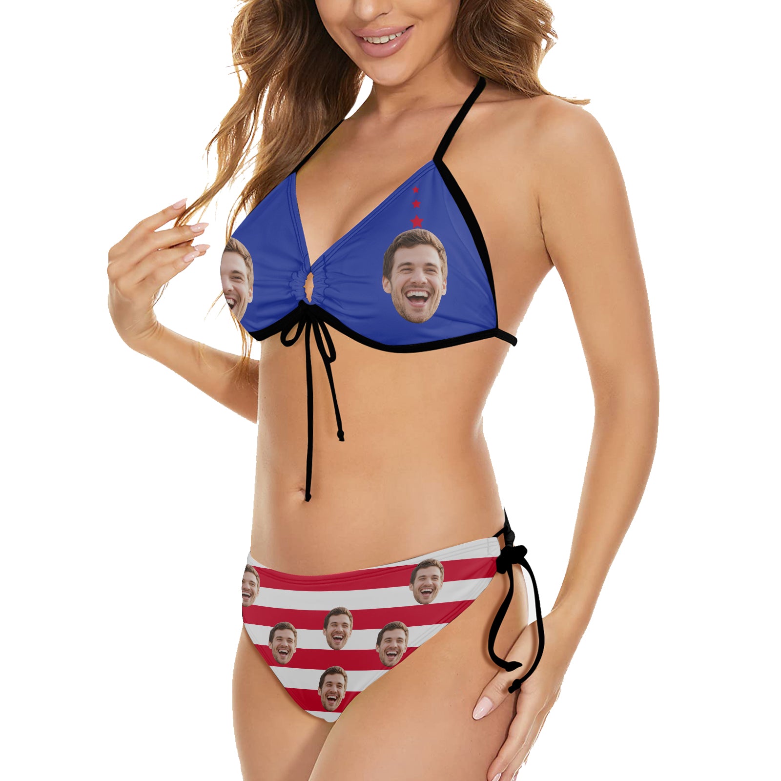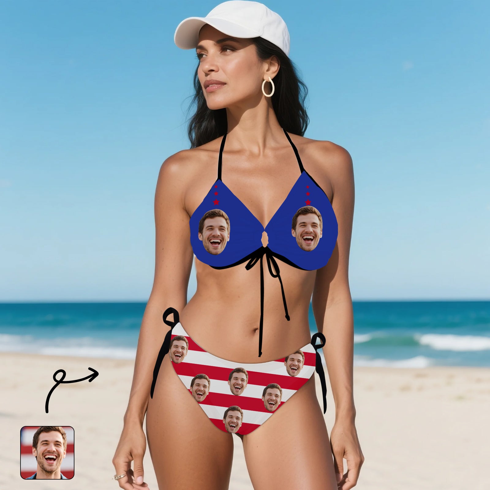 (Tax Included) Custom Face Patriotic Star Bikini Set With Personalized Portrait Print For Pool Parties