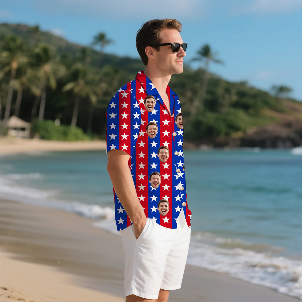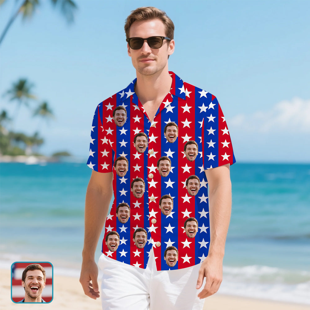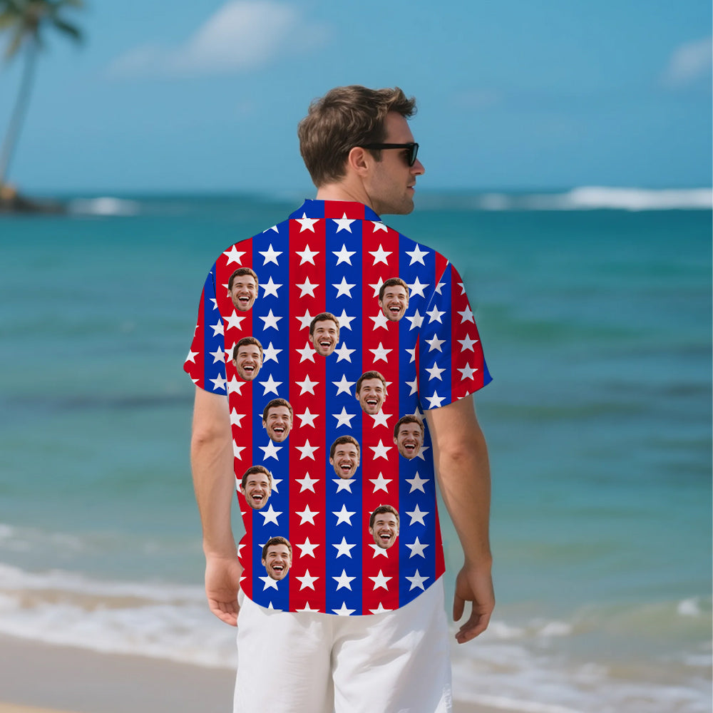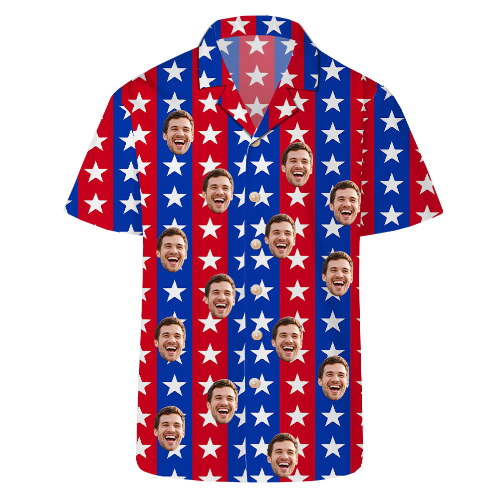 (Tax Included) Custom Face Patriotic Stripe Shirt - Red/Blue/White Star Portrait Print