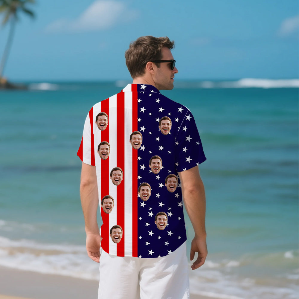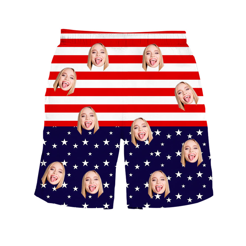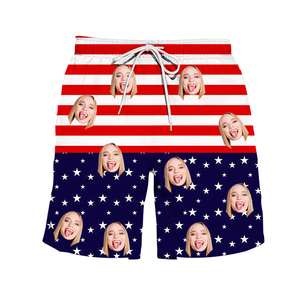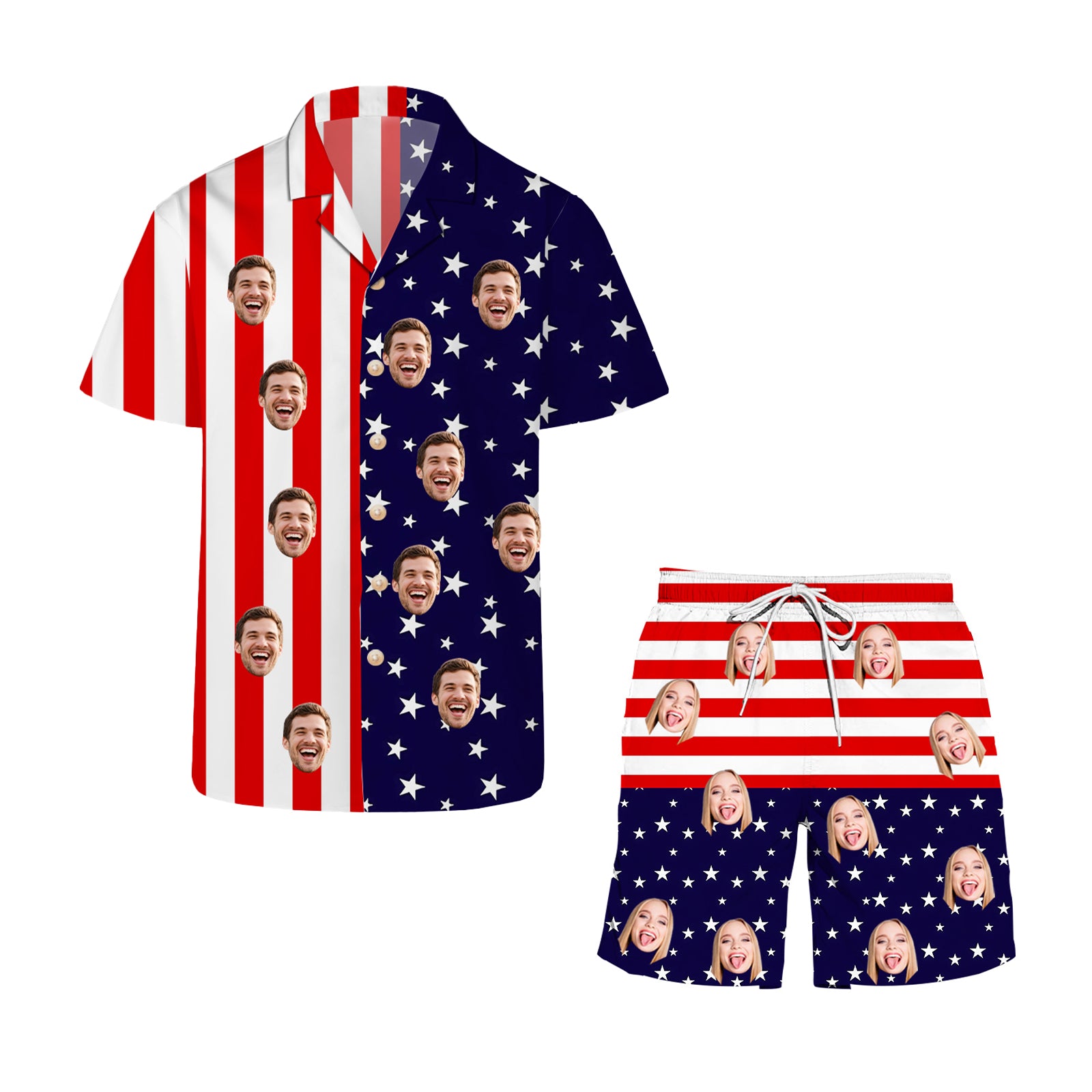 (Tax Included) Custom Face Personalized Red White & Blue Beach Shorts With Tropical Shirt Combo