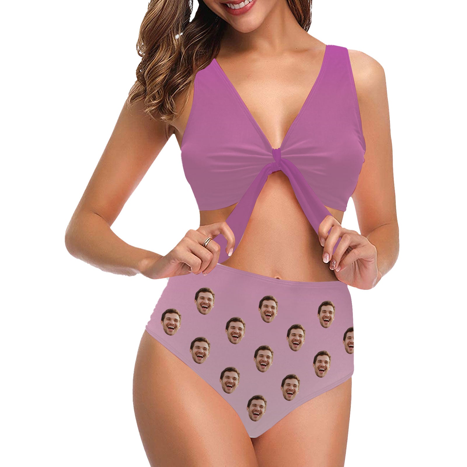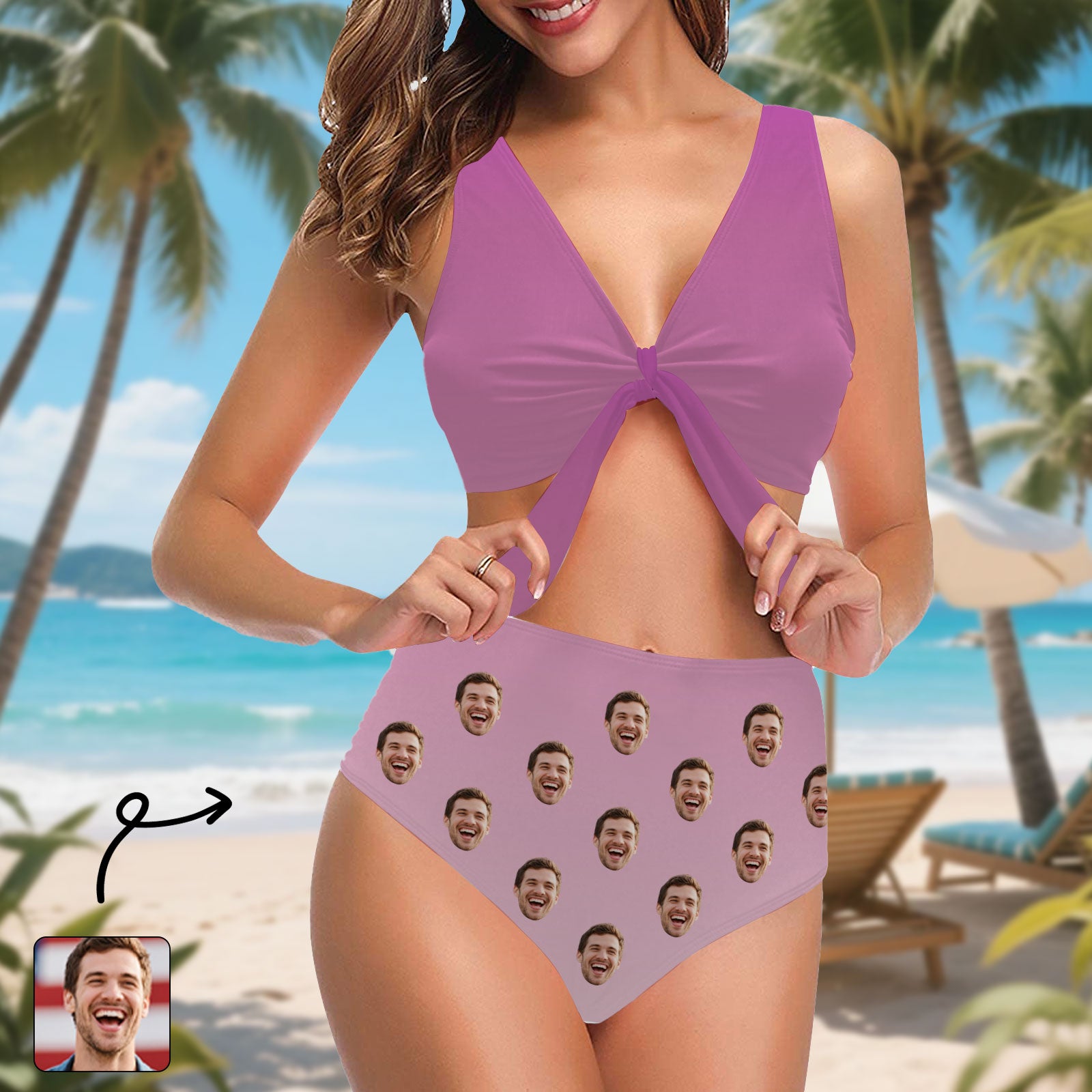 (Tax Included) Custom Face Purple Ombre Swimsuit - Gradient Portrait Swimwear