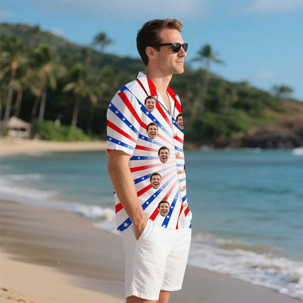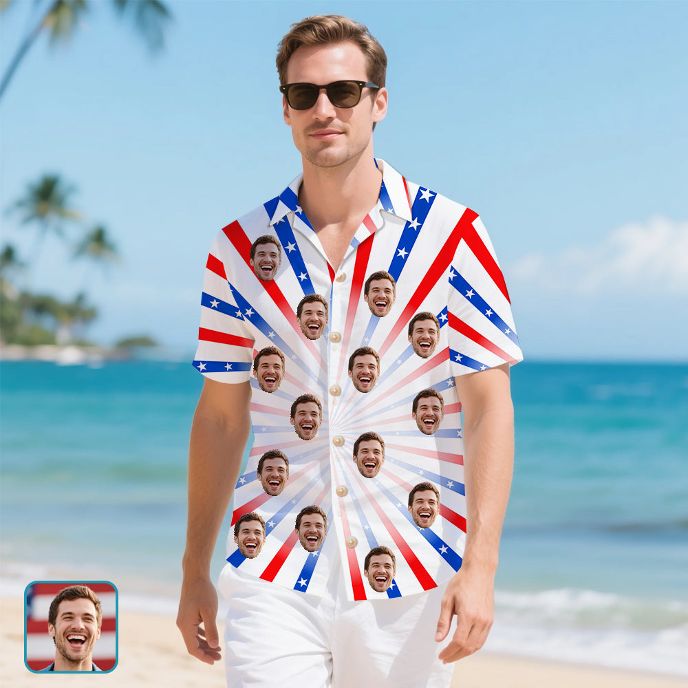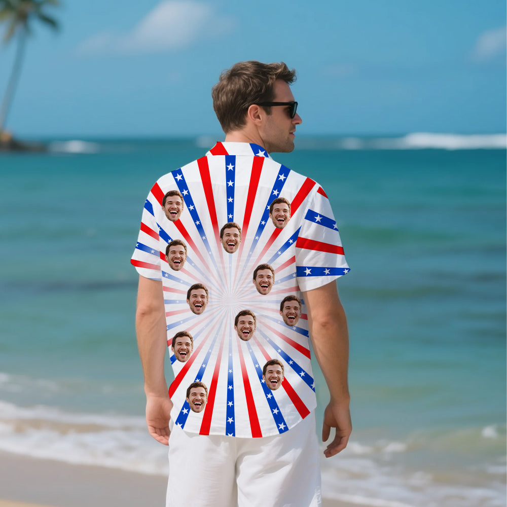 (Tax Included) Custom Face Radiating Star Pattern Shirt - Dynamic Portrait Hawaiian Wear