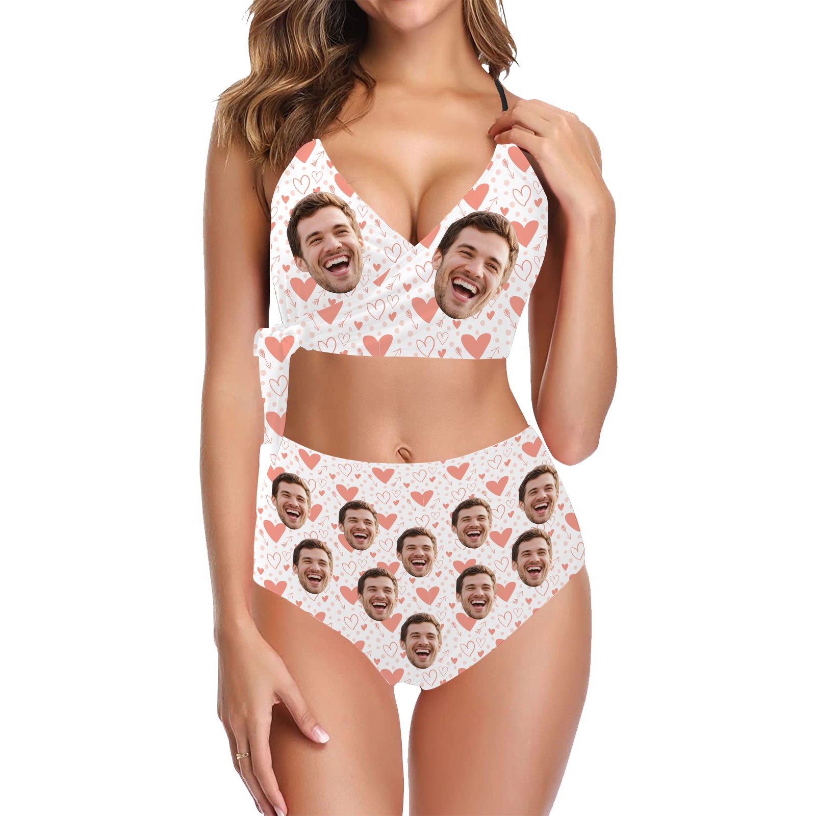 (Tax Included) Custom Face Romantic Sweet Heart Print Swimsuit With Customizable Portrait