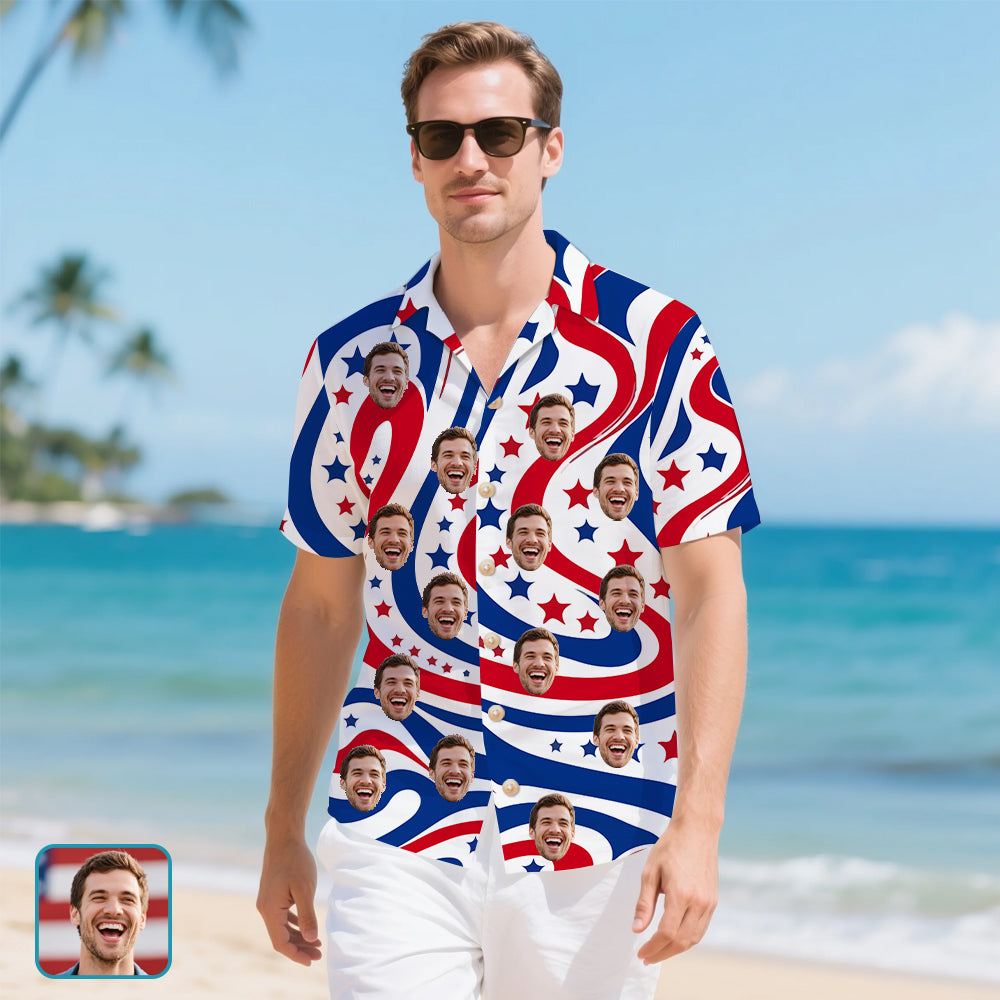 (Tax Included) Custom Face Spiral Flag Shirt - Dynamic Portrait Aloha Design