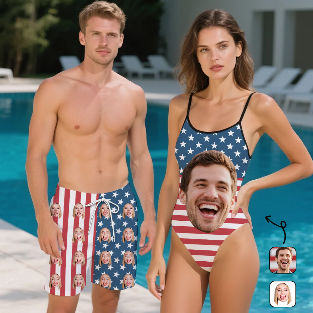(Tax Included) Custom Face Split Flag Design Swimwear & Beach Shorts For Modern Summer Vibes