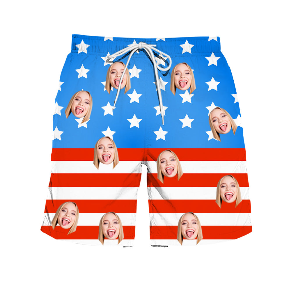 - Either to get a smile out of you or to use every day, you are going to love our custom beach shorts with photo. They are made with the best material and super soft you will enjoy wearing. Customize your beach shorts with your favorite photo face and make the perfect gift! Make the perfect beach shorts for family and friends that they will never forget about.