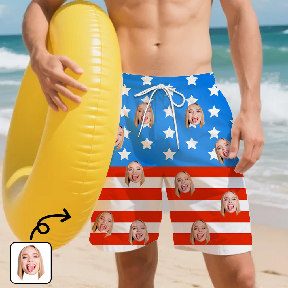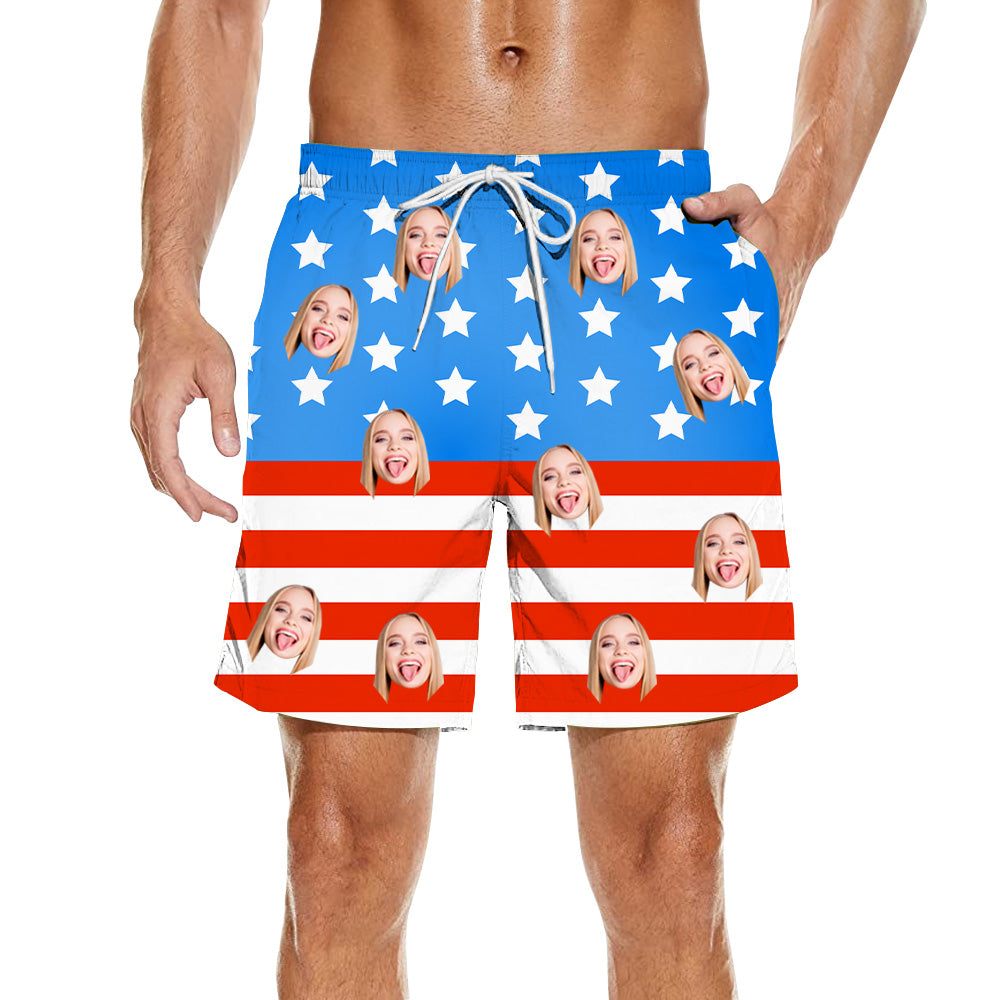 (Tax Included) Custom Face Star-Spangled Beach Shorts - Patriotic Portrait Design For Summer Style