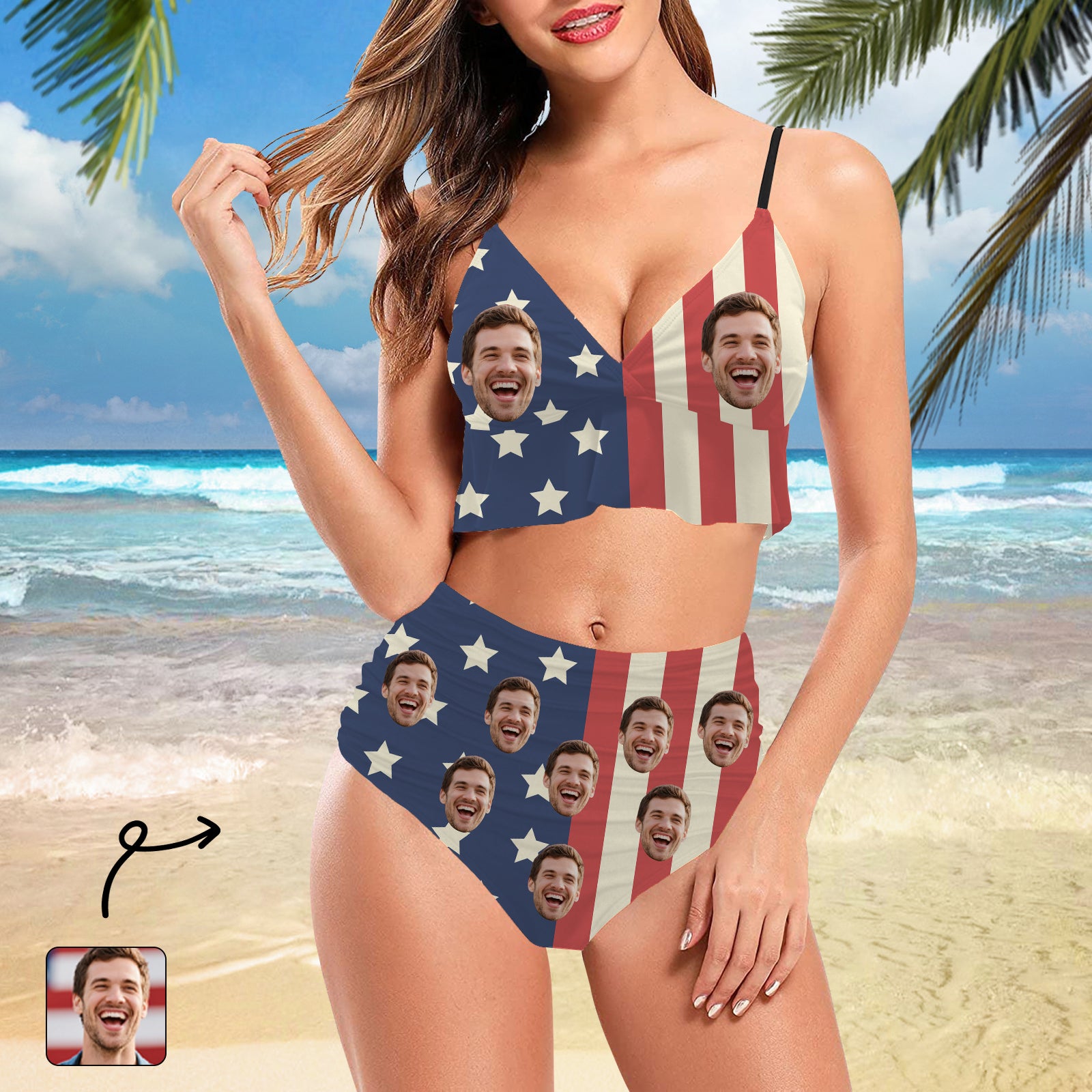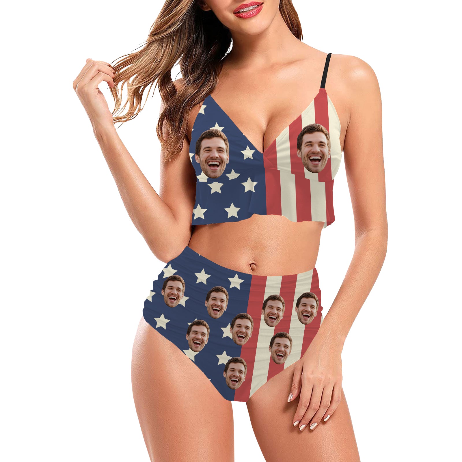 (Tax Included) Custom Face Vintage Flag Swimsuit - Trendy Retro Style With Custom Portrait
