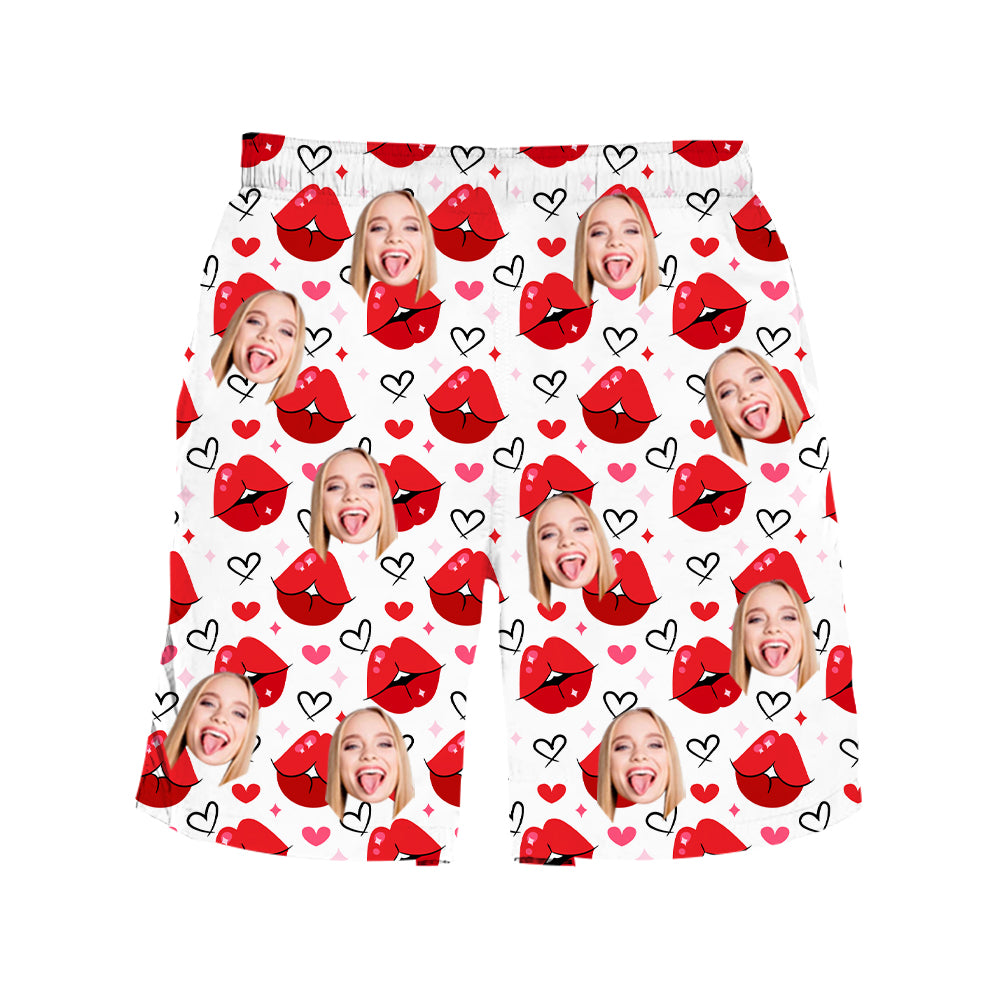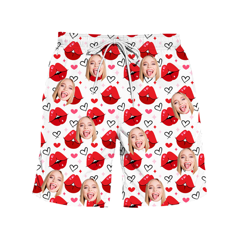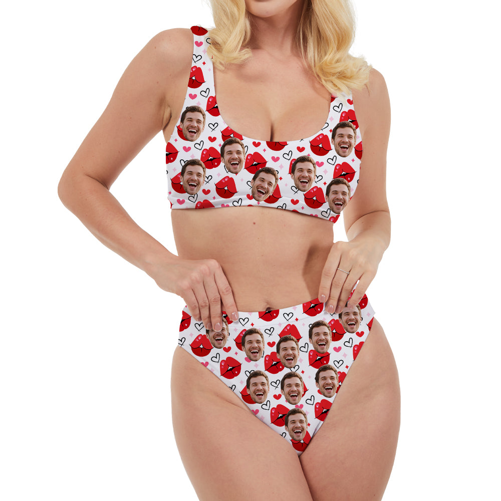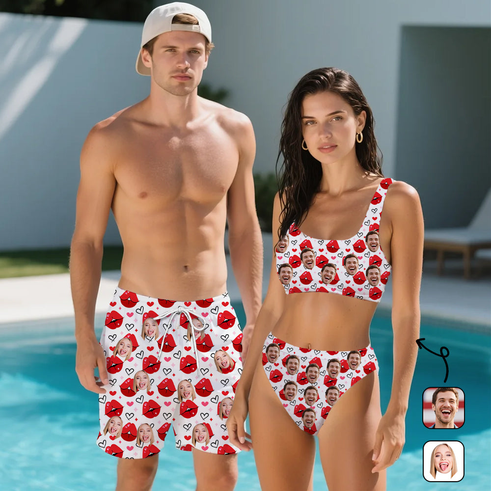 (Tax Included) Custom Face White Base Red Lips Swim Set For Chic Beach Party Style