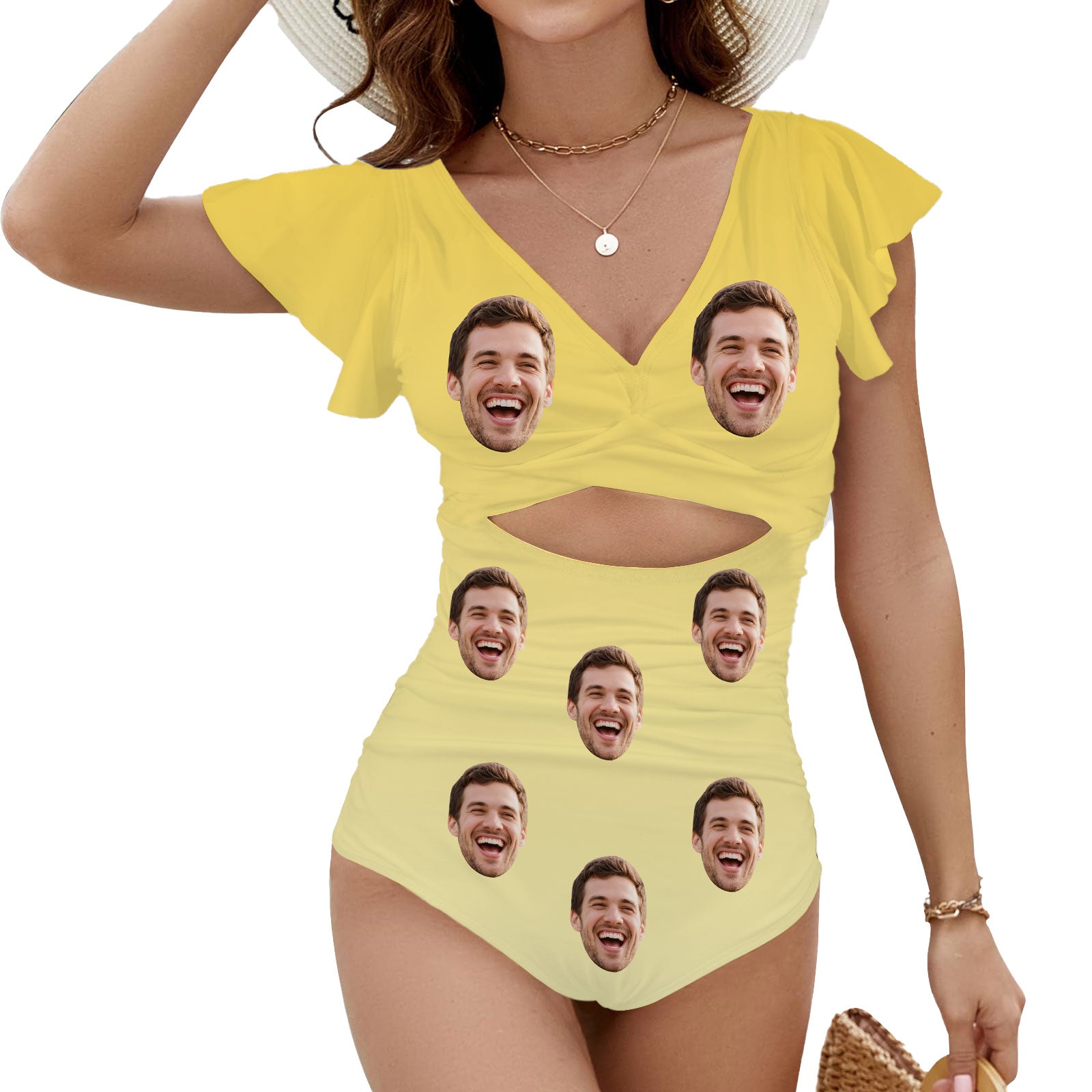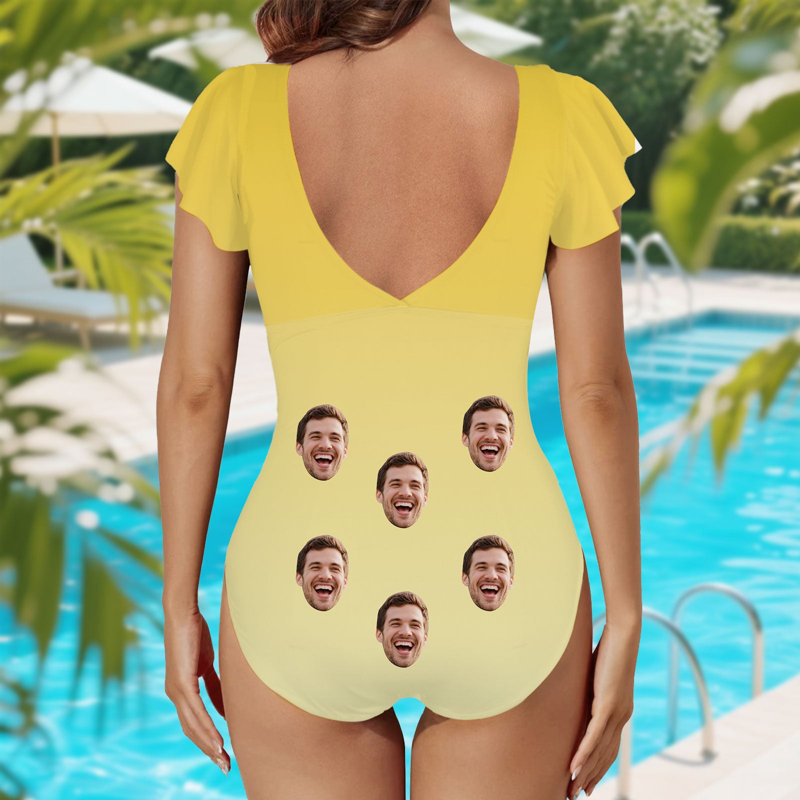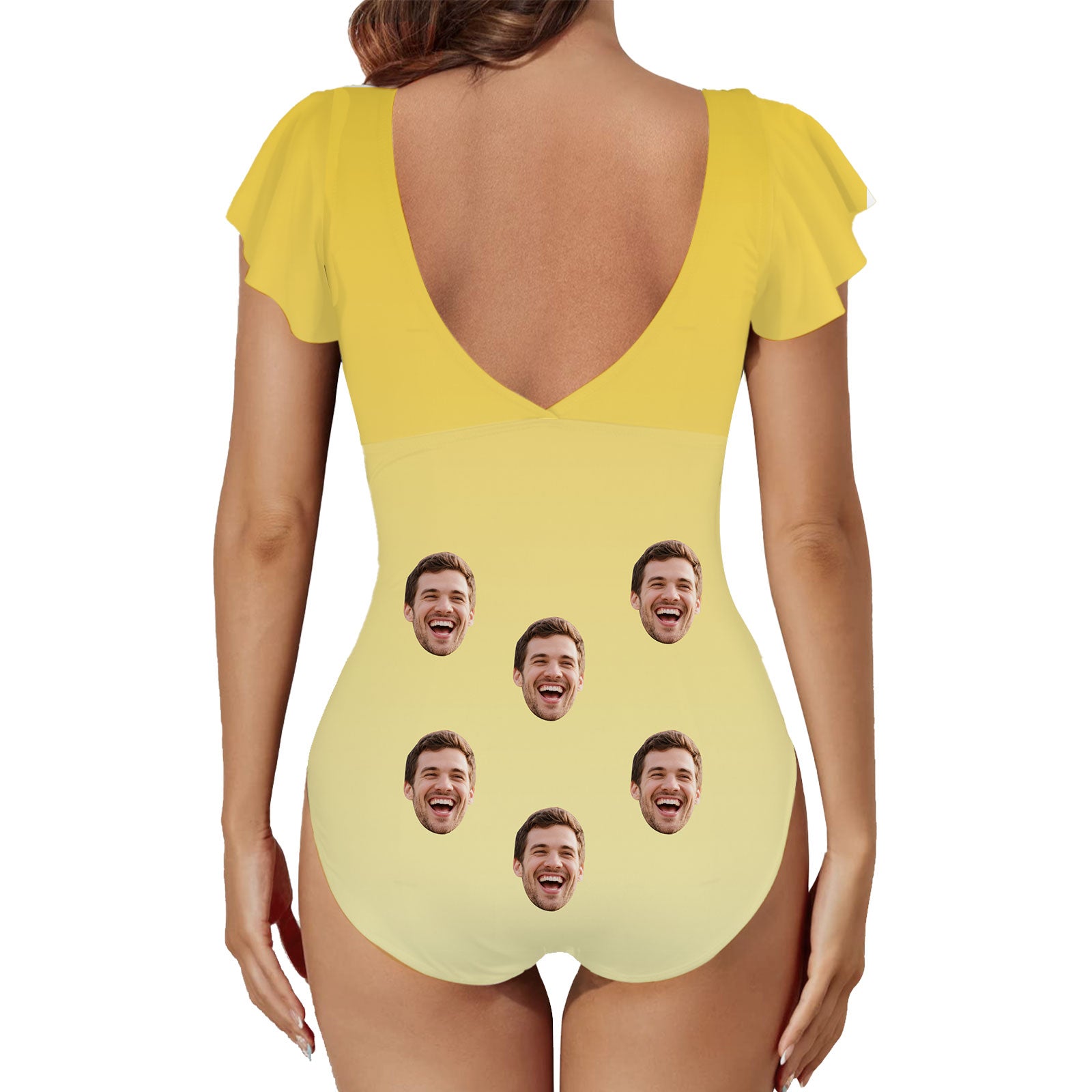 (Tax Included) Custom Face Yellow Gradient Swimsuit - Bold Portrait Accent