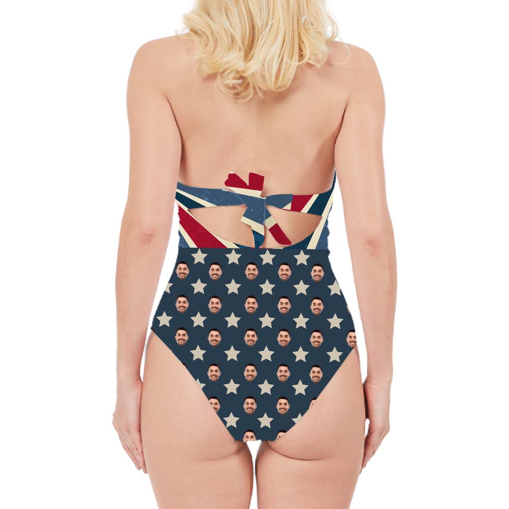 Traje de baño de mujer de una pieza a rayas con pentagrama vintage personalizado