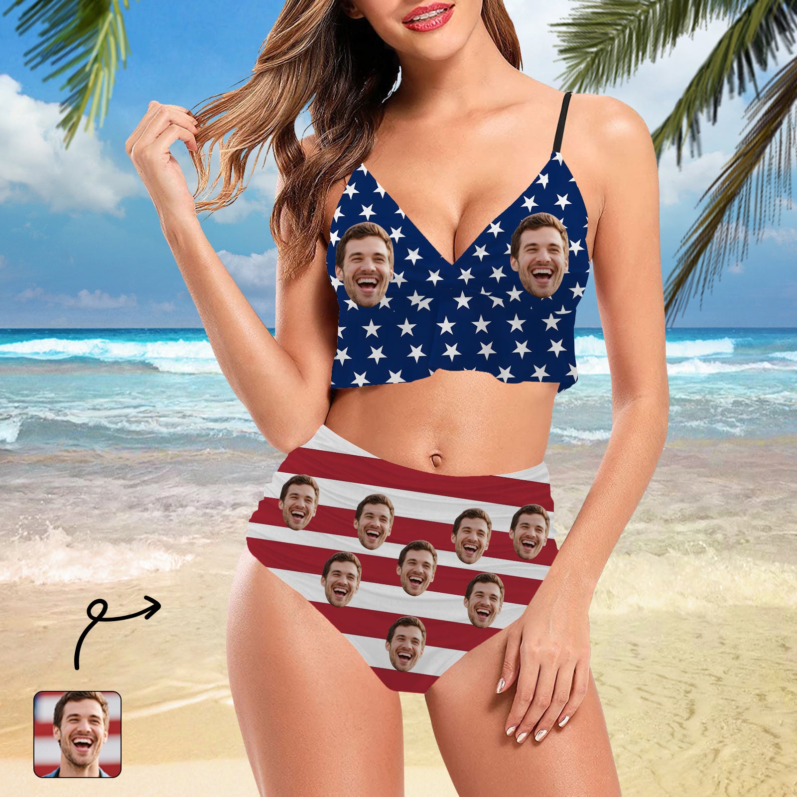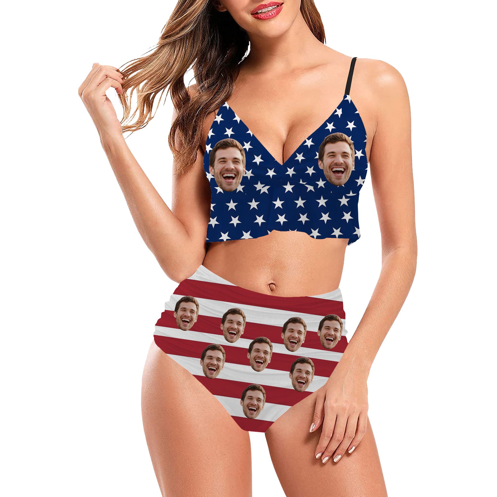 (Tax Included) Festive Custom Face Bikini Swimsuit With Patriotic Stars Stripes