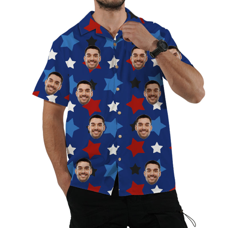 (Tax Included) July 4th Face Print Shirt Custom Patriotic Hawaiian Design Personalized Shirts